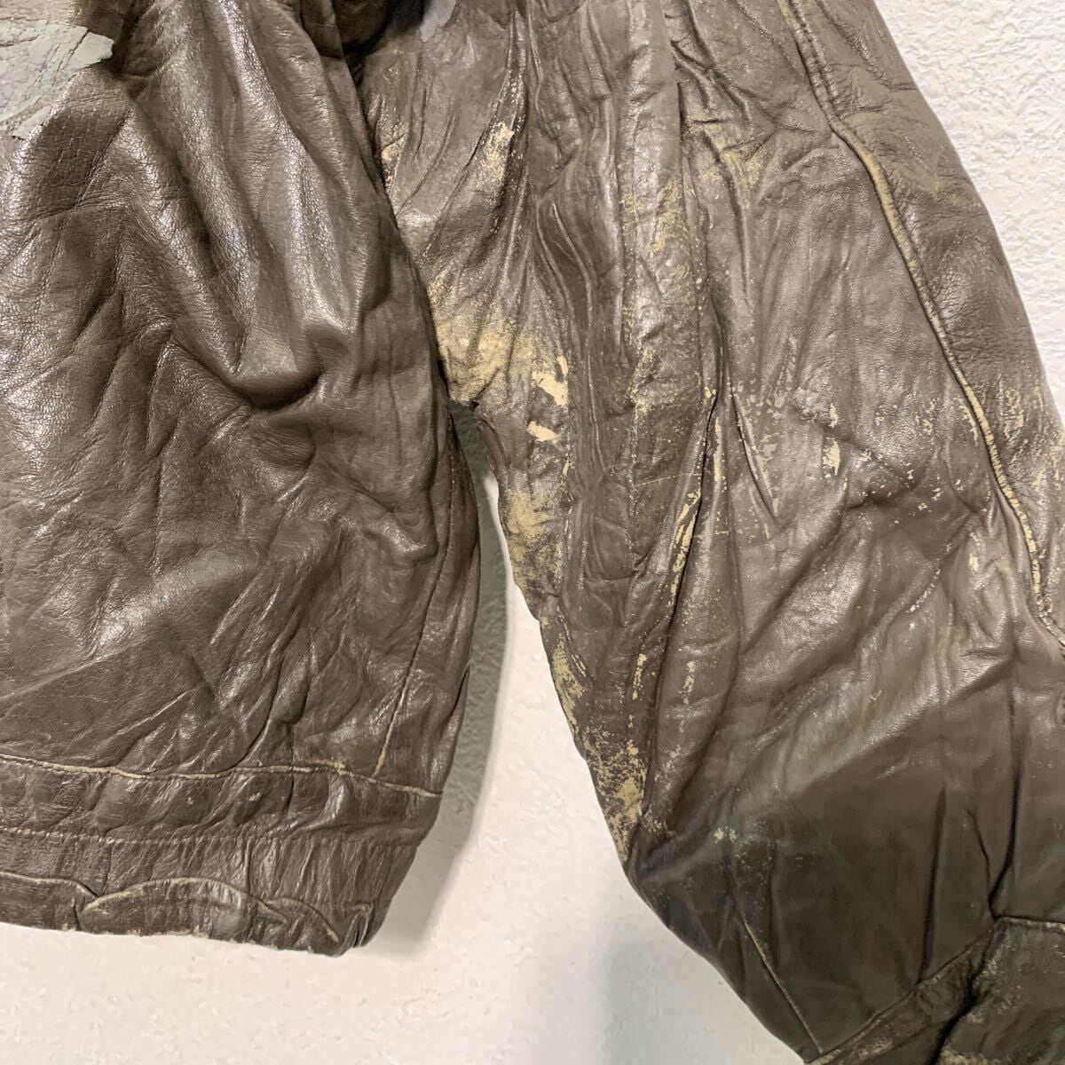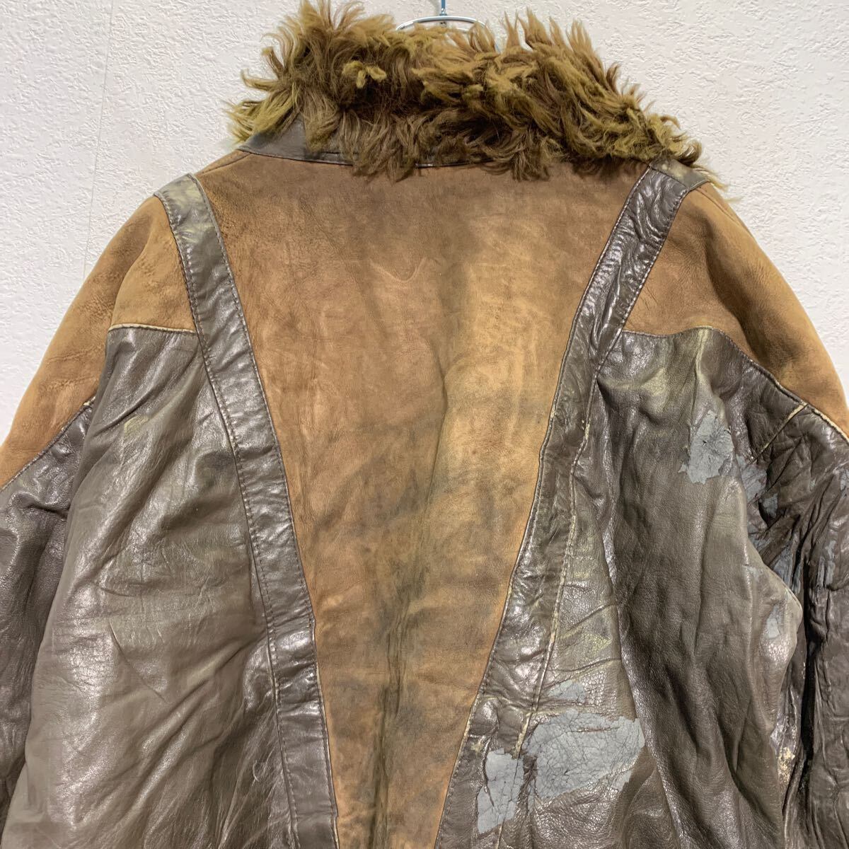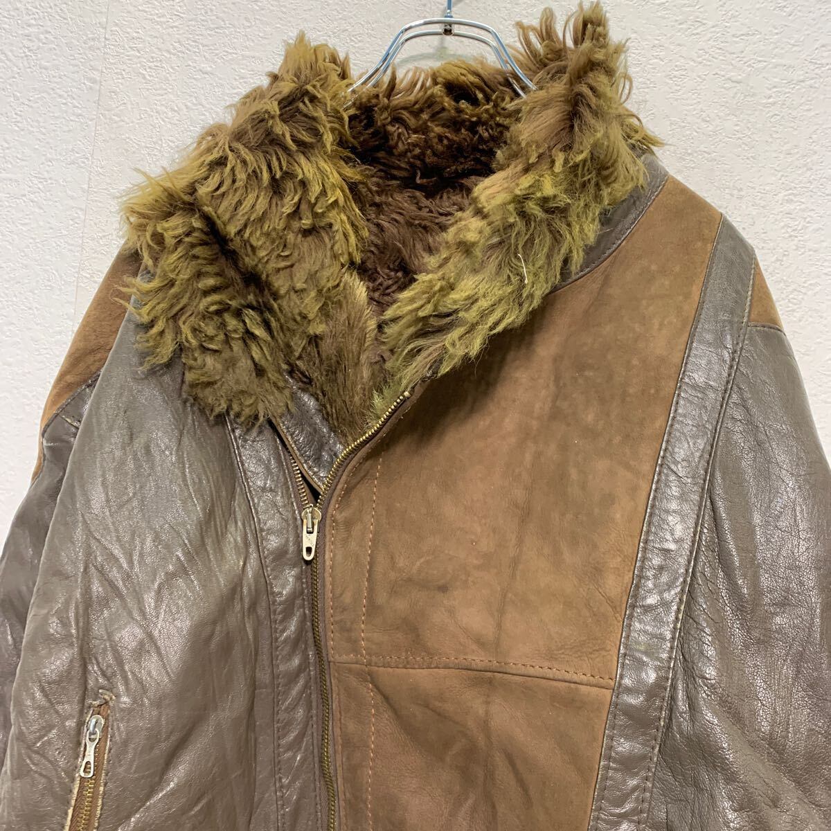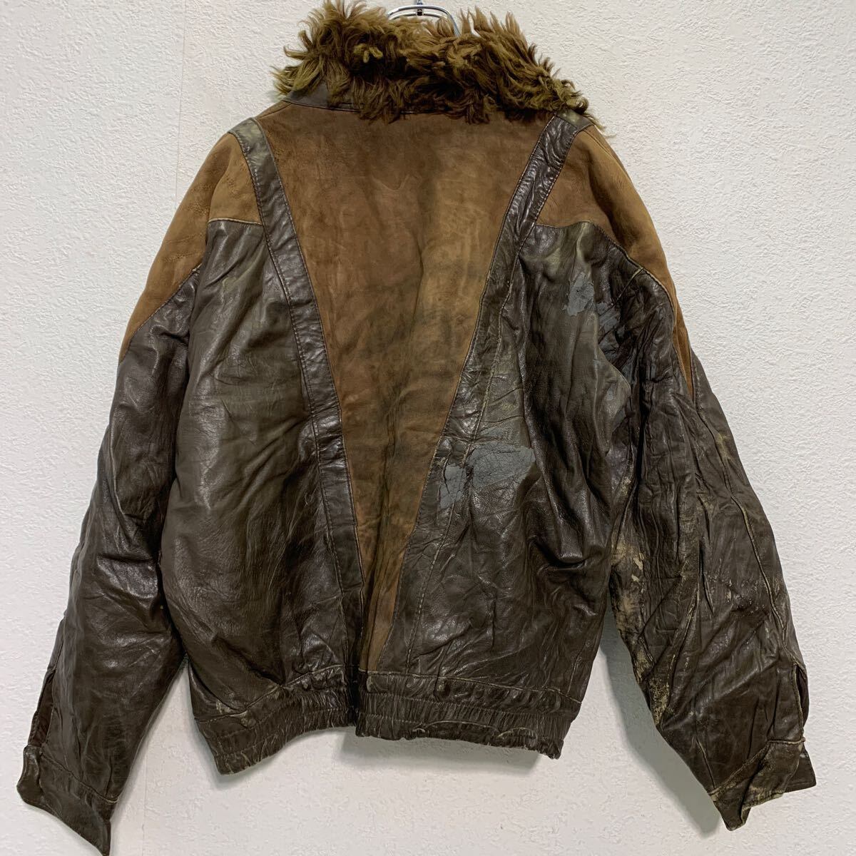 ジップアップ レザージャケット M ブラウン 襟ボア 裏キルティング ブルゾン 古着卸 アメリカ仕入 a612-5816