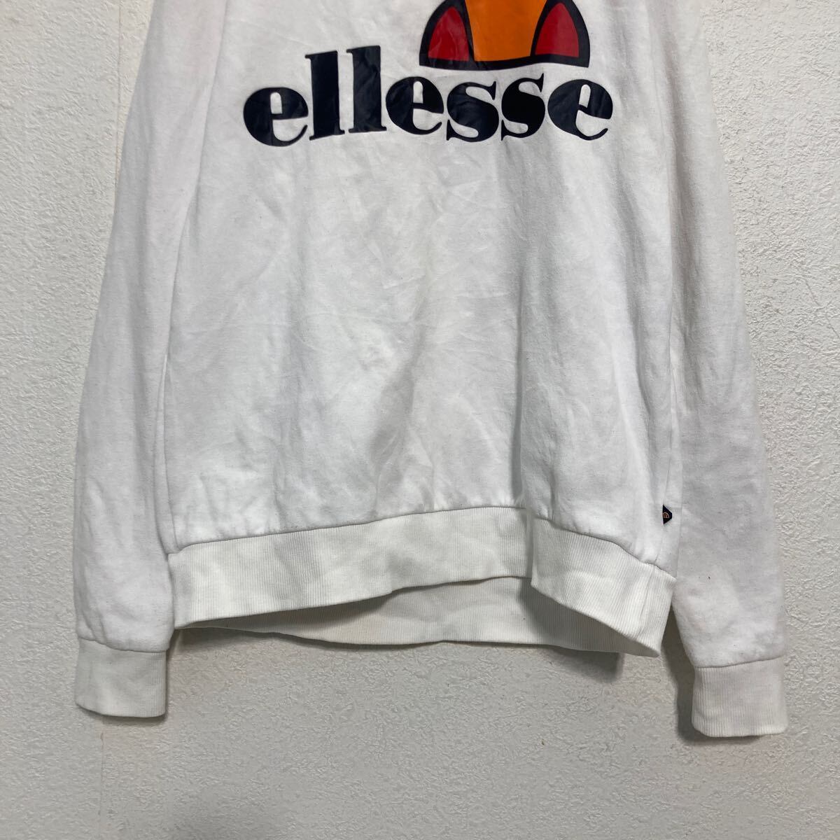 ellesse プリントスウェット トレーナー レディース L〜 ホワイト エレッセ 裏起毛 ビッグロゴ 古着卸 アメリカ仕入 a612-5823
