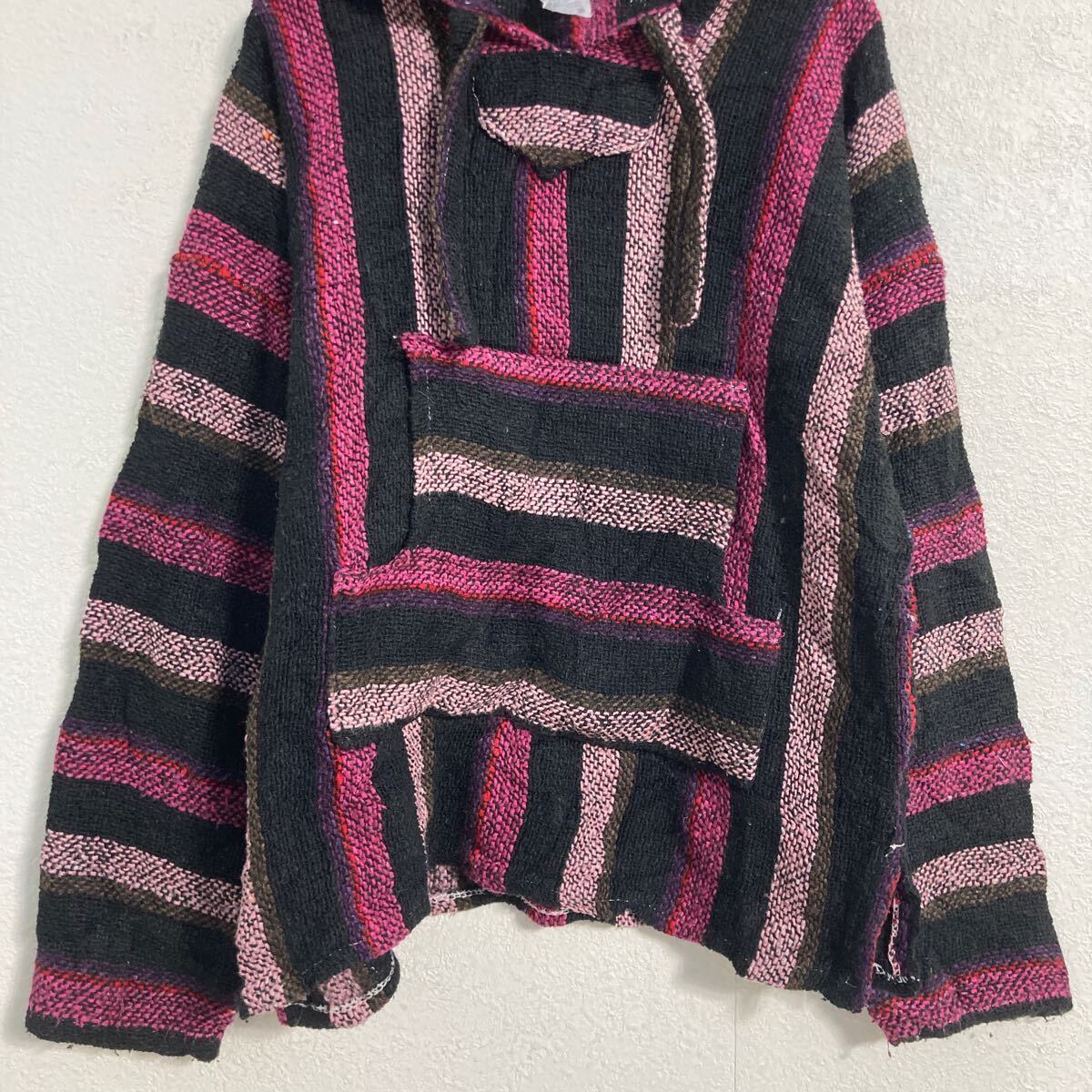 メキシカンパーカー ブラック ピンク マルチカラー L メキシコ製 ヒッピー 民族 古着卸 アメリカ仕入 a612-5843