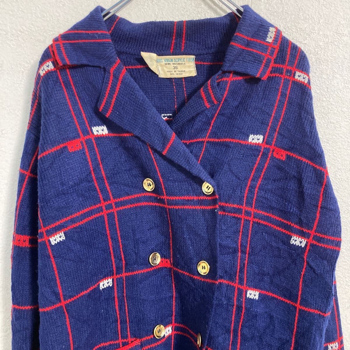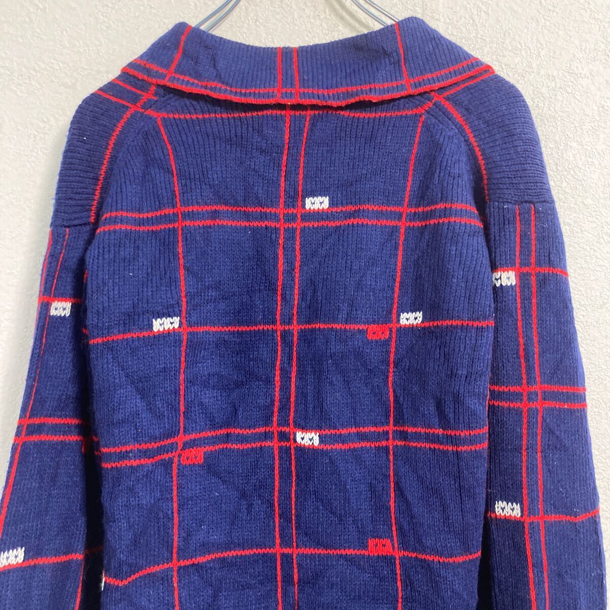 アクリル ニット セーター ジャケット S 程 ネイビー レッド ボタン 襟付き 古着卸 アメリカ仕入 a612-5853