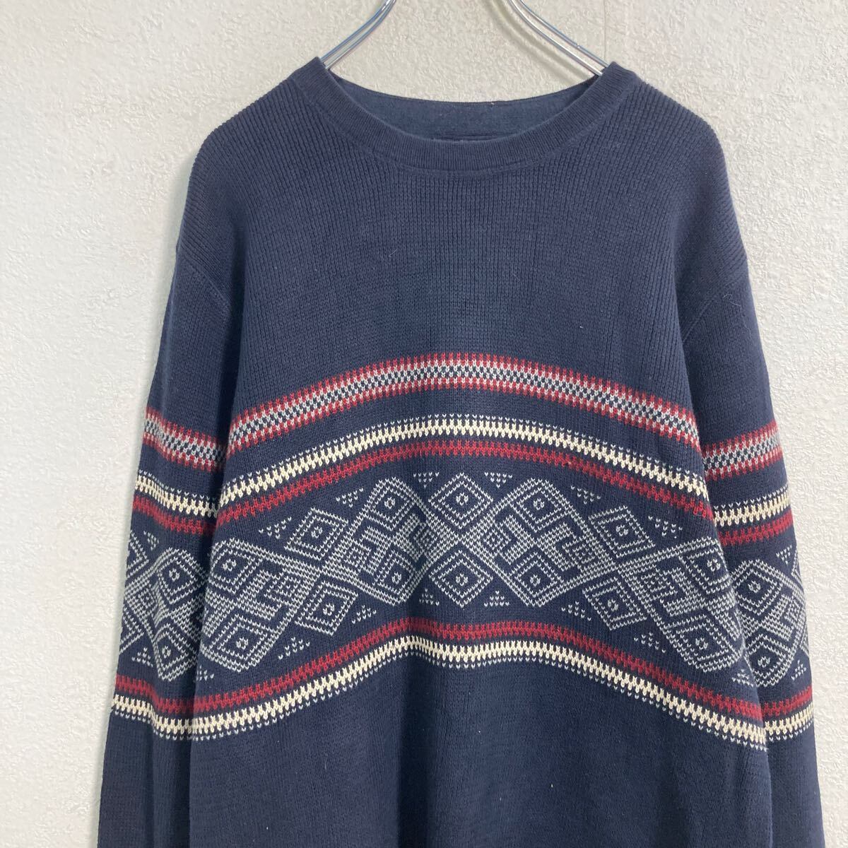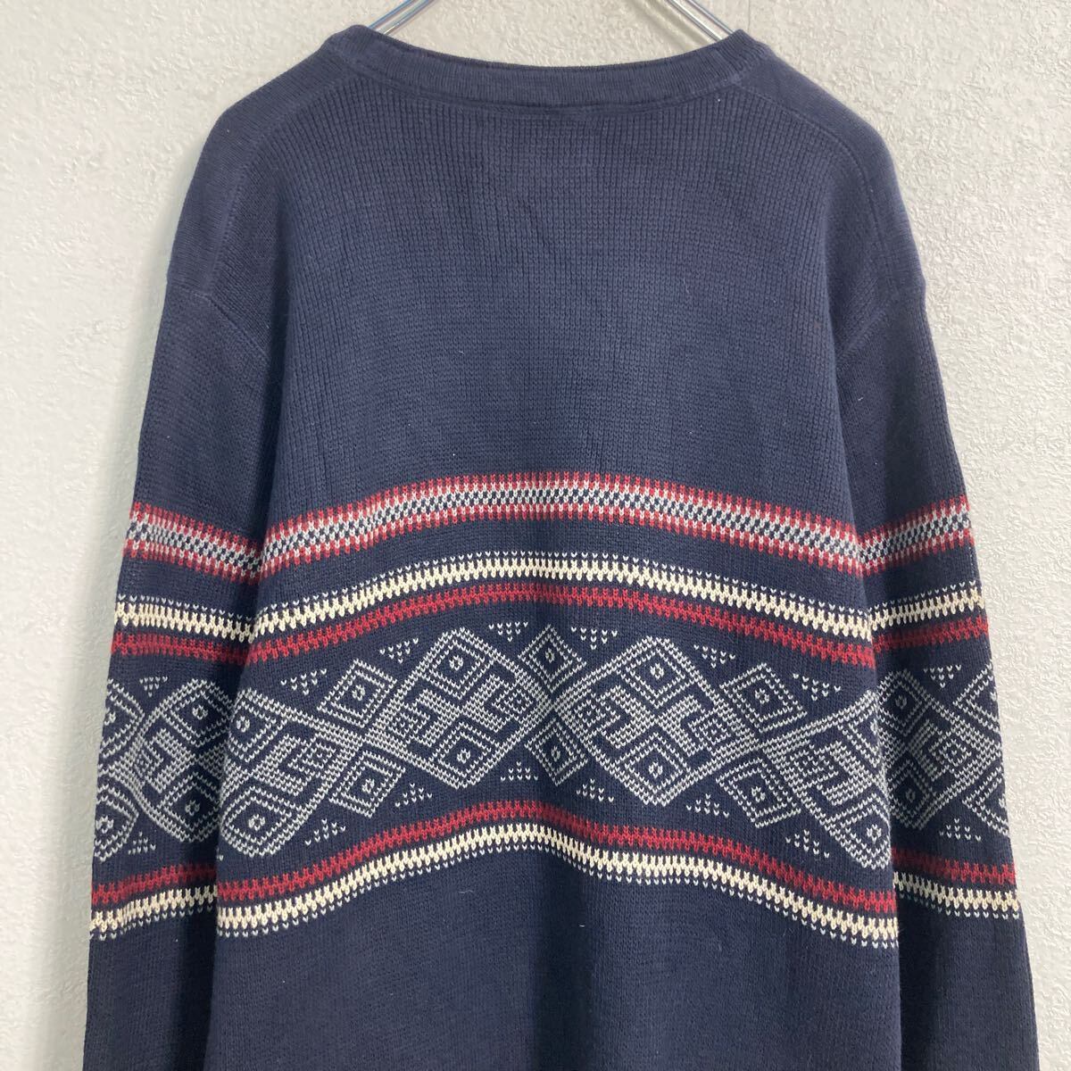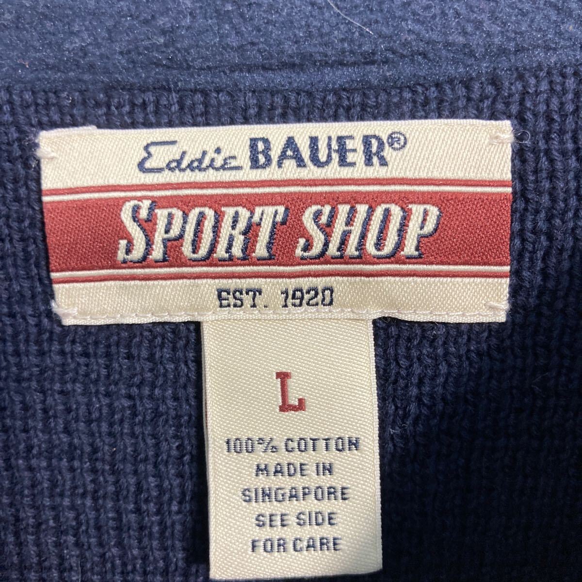 Eddie Bauer コットン ニット セーター L ネイビー レッド エディーバウアー 古着卸 アメリカ仕入 a612-5854
