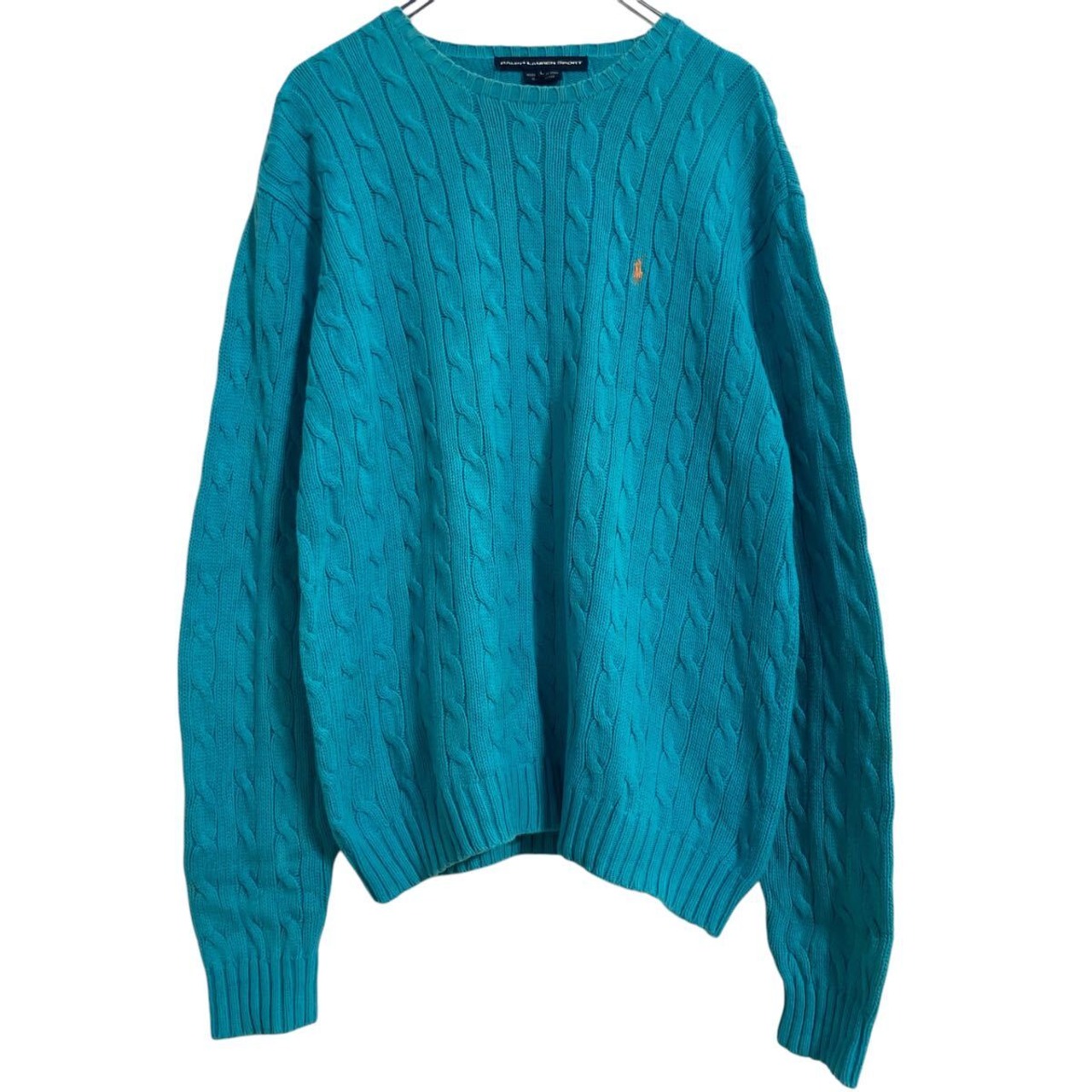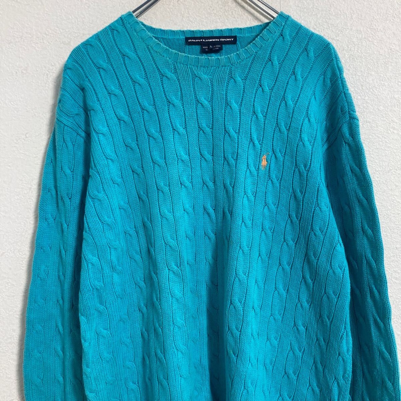 RALPH LAUREN SPORT コットン ニット セーター L ターコイズブルー ラルフローレン ワンポイント 古着卸 アメリカ仕入 a612-5859