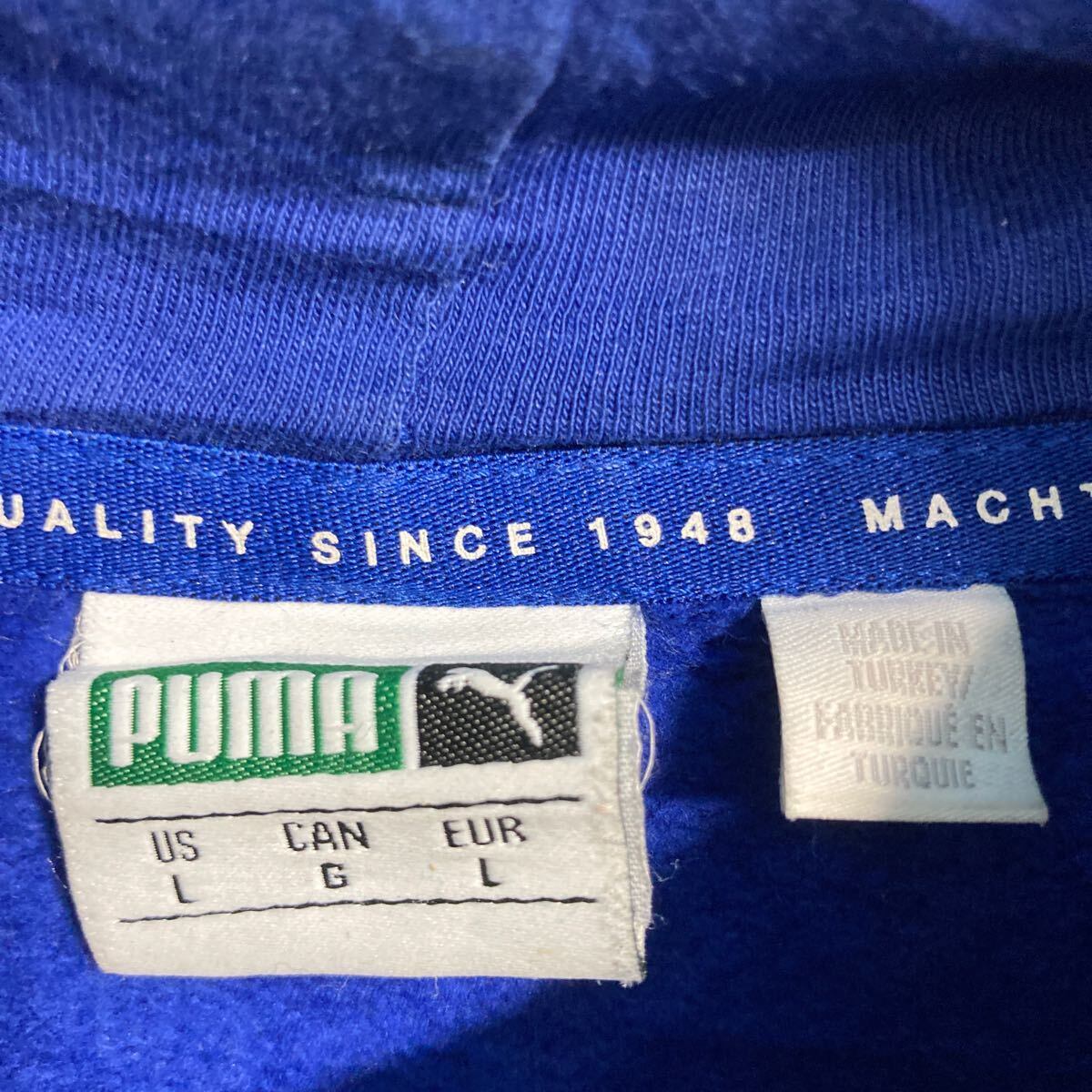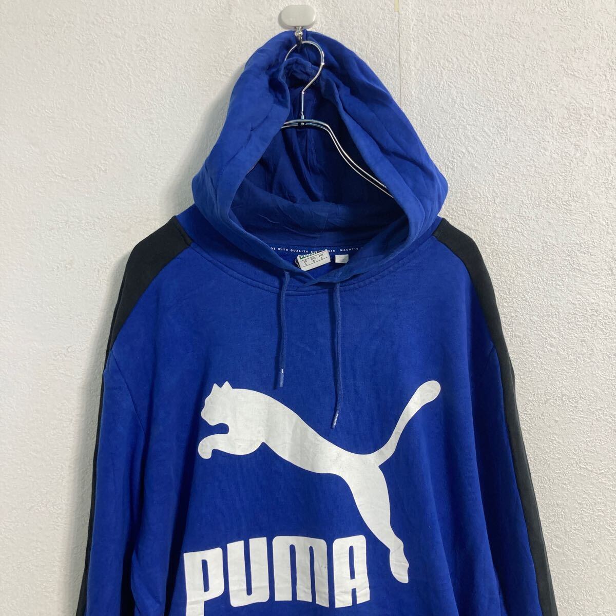PUMA プリントスウェット パーカー L ブルー プーマ スポーツ プルオーバー ポケット 古着卸 アメリカ仕入 a612-5860
