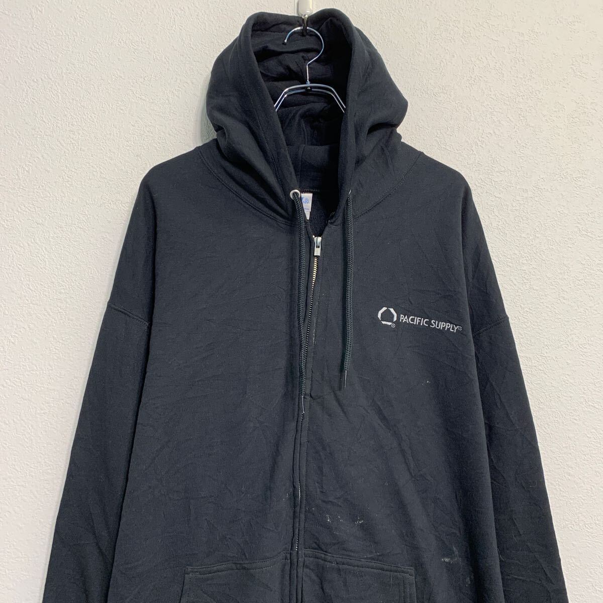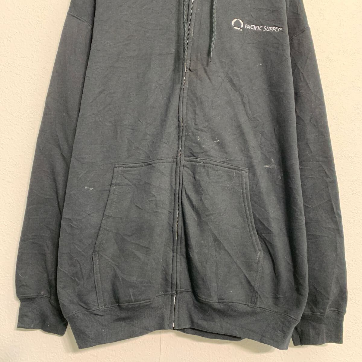 プリントスウェット パーカー 2XL ブラック ジップアップ ビッグサイズ ポケット付き シンプル 古着卸 アメリカ仕入 a612-5886