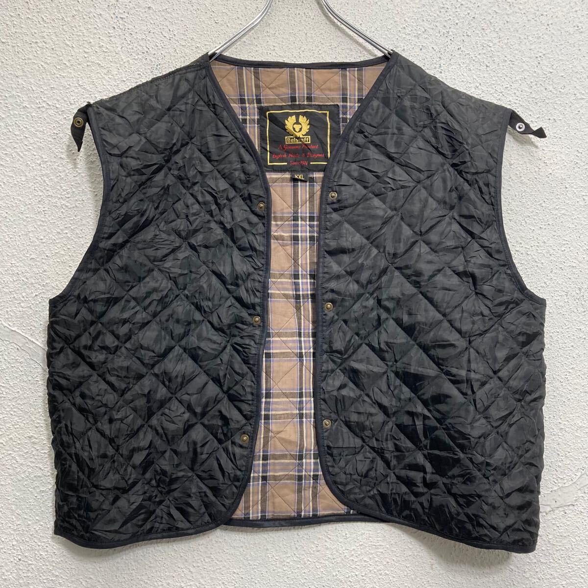 Belstaff キルティング ライナーベスト XXL ブラック ビッグサイズ ベルスタッフ 裏地チェック 古着卸 アメリカ仕入 a612-5891