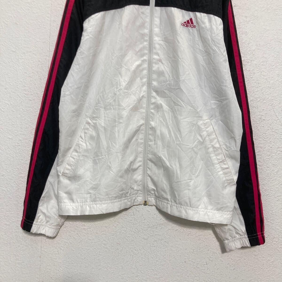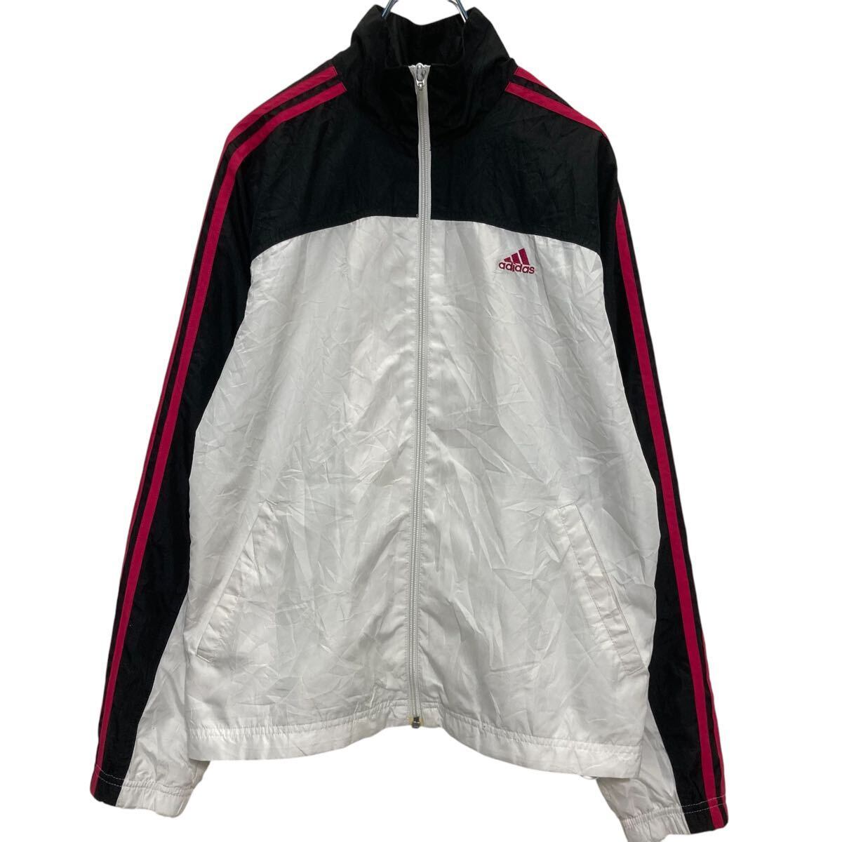 adidas ジップアップ ナイロンジャケット M ホワイト ブラック ピンク アディダス ワンポイントロゴ 古着卸 アメリカ仕入 a612-5903