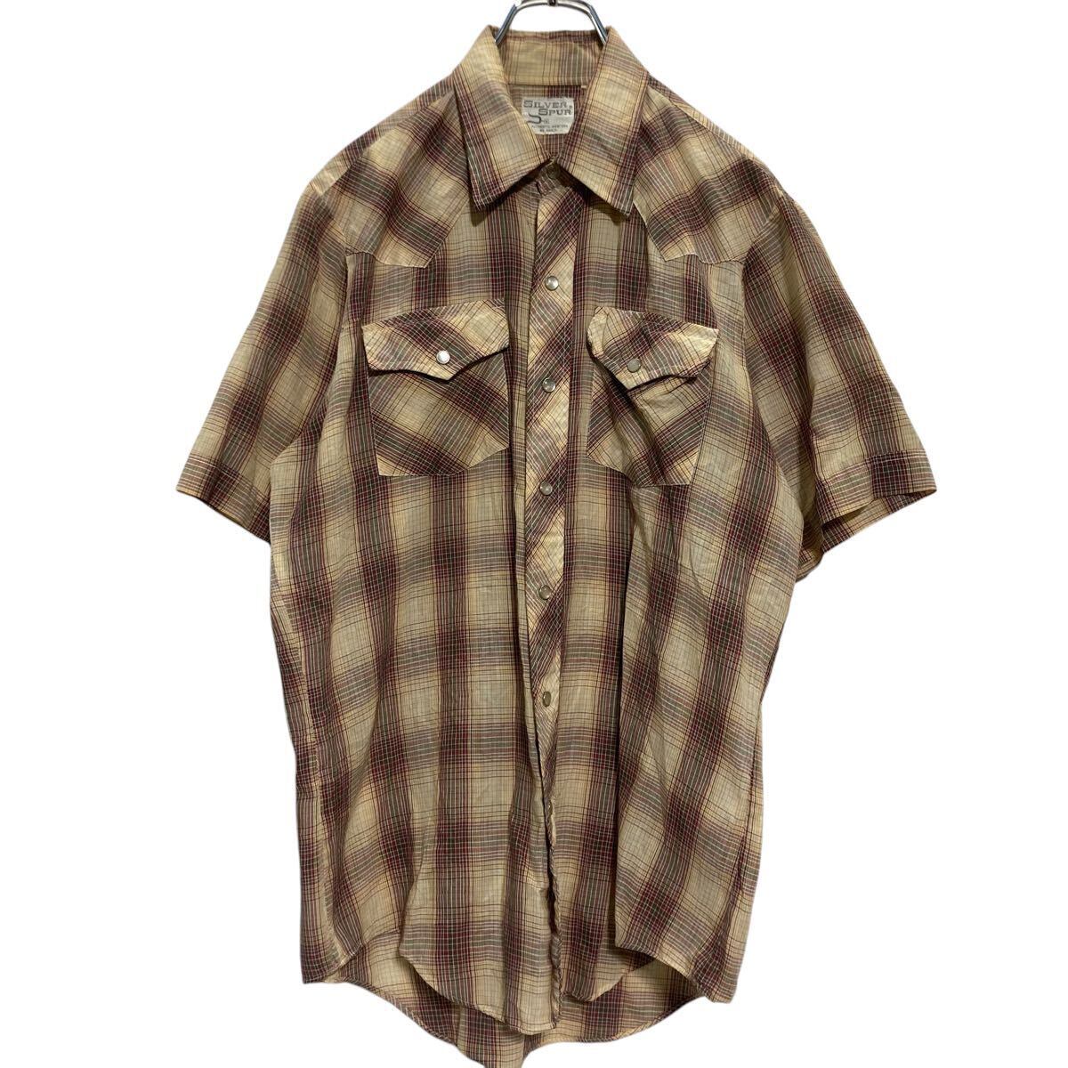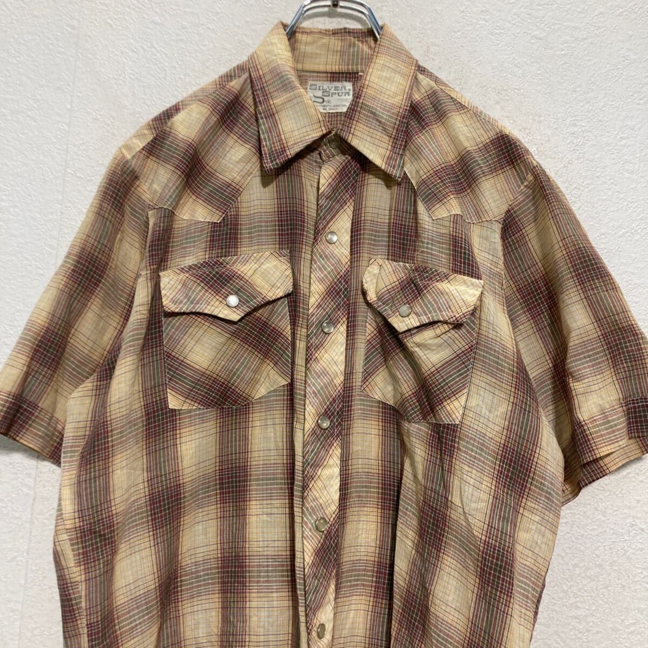 SIVVER SPUR 半袖 チェック ウエスタンシャツ XL〜 バーガンディ イエロー 古着卸 アメリカ仕入 a612-5905