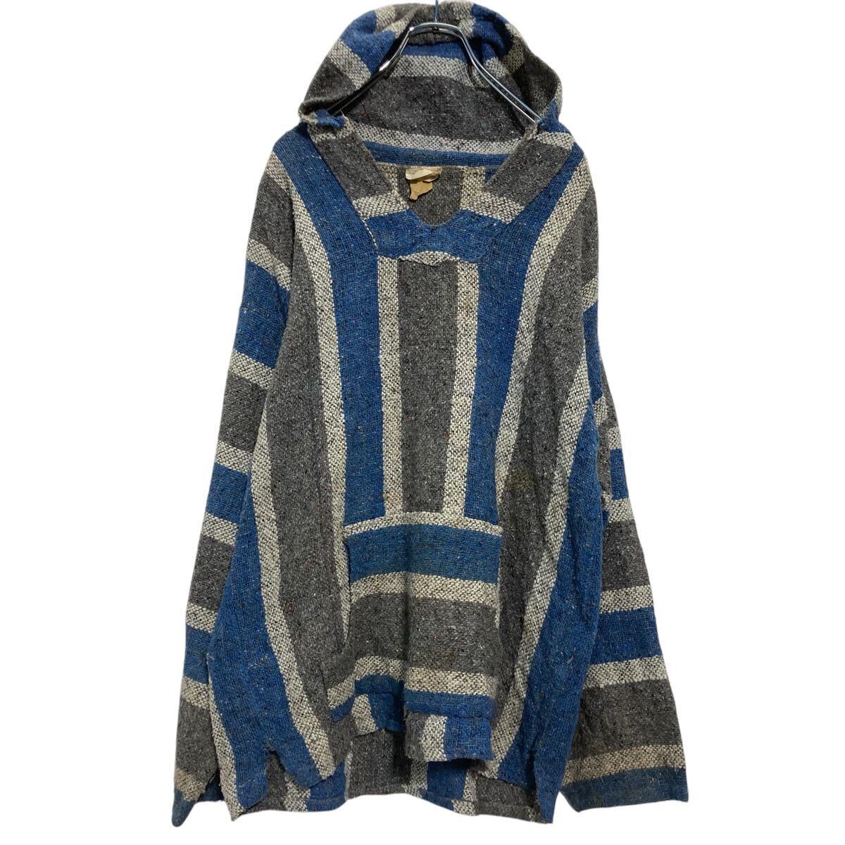 SENOR LOPEZ メキシカンパーカー XL〜 グレー ブルー ヒッピー 民族 ビッグサイズ 古着卸 アメリカ仕入 a612-5920