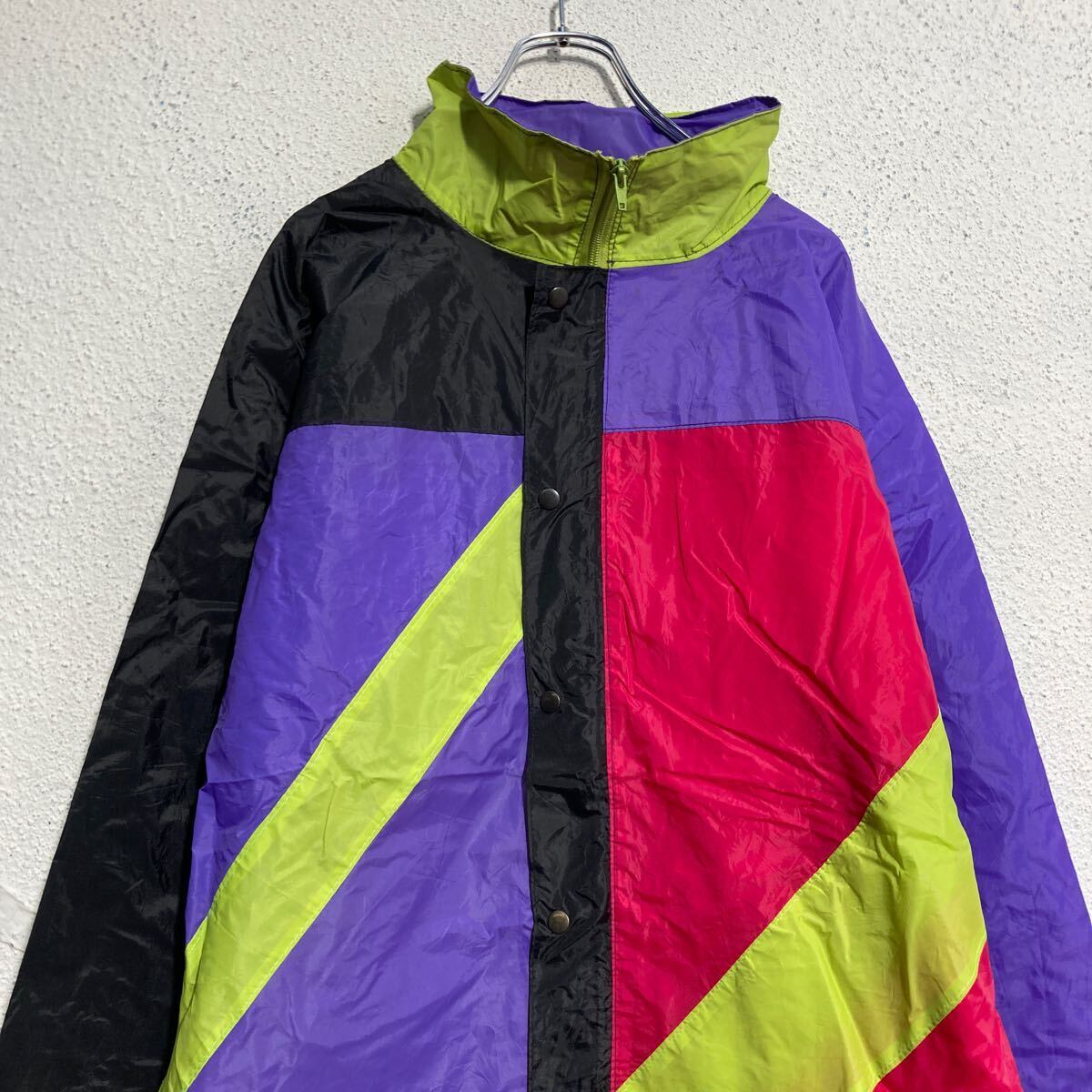 BALENO ナイロンジャケット L パープル ブラック マルチカラー ライトアウター フルシップ バックポケット 古着卸 アメリカ仕入 a612-5930