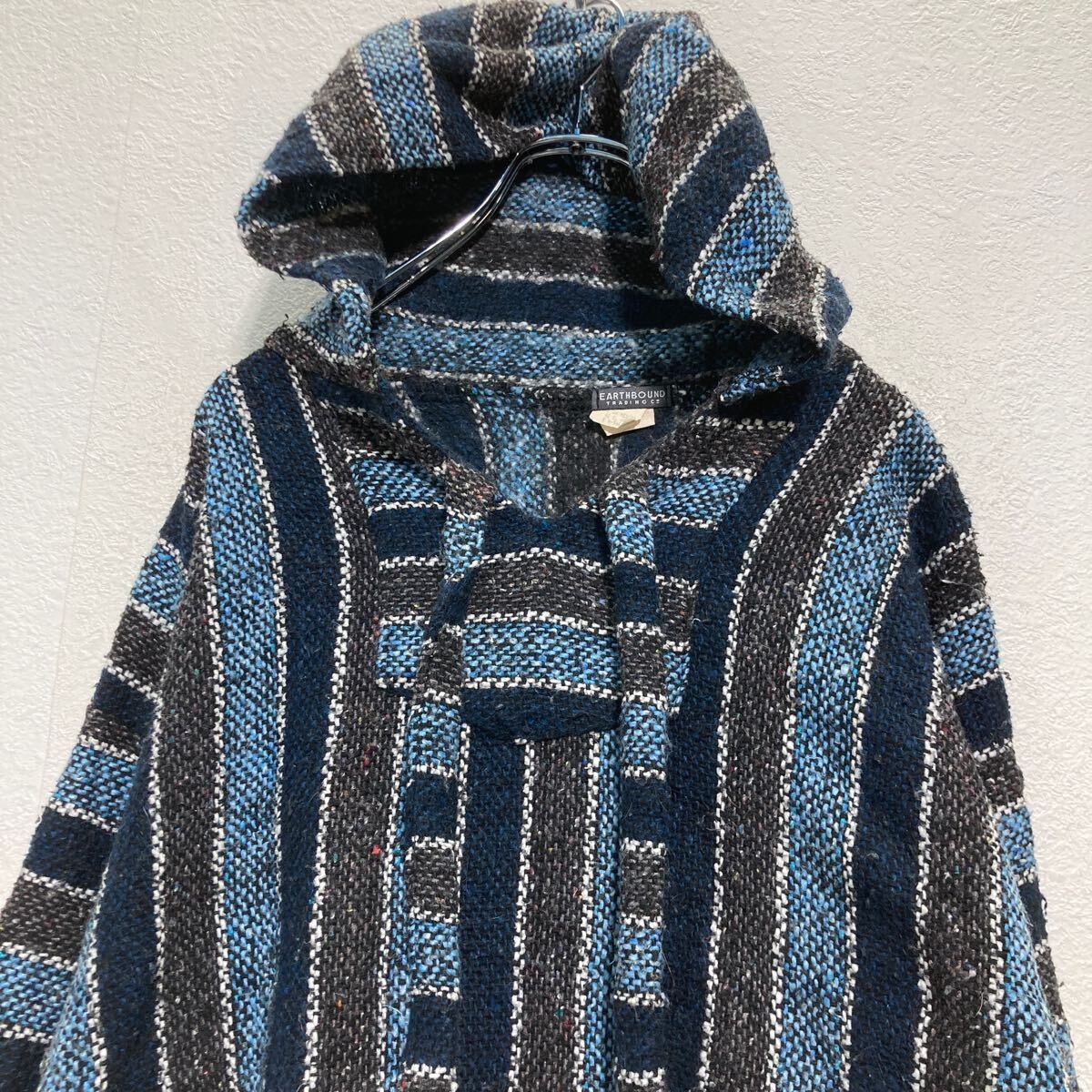EARTHBOUND メキシカンパーカー XL ネイビー グレー ライトブルー メキシコ製 ビッグサイズ ヒッピー 民族 古着卸 アメリカ仕入 a612-5954