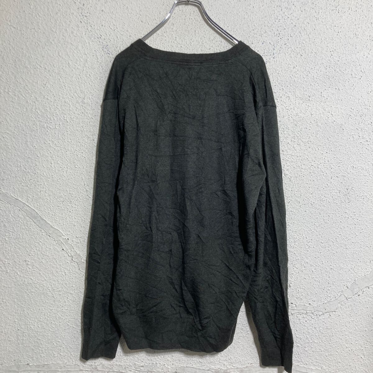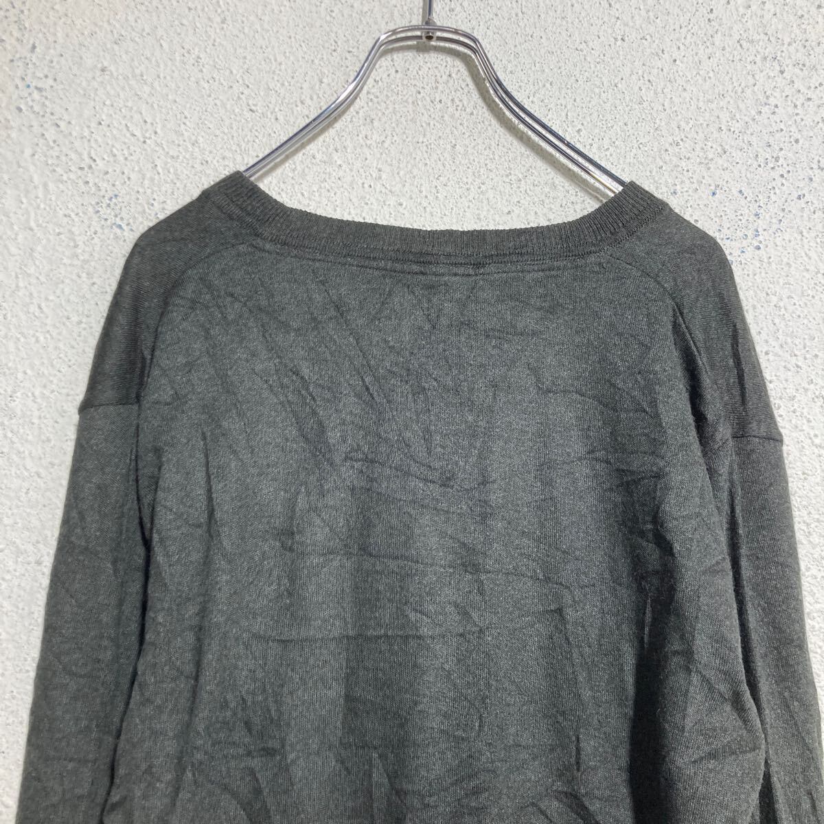 BLUE SAIL ウール混紡 ニット セーター XL ダークグレー Vネック ビッグサイズ 刺繍ロゴ 古着卸 アメリカ仕入 a612-5973