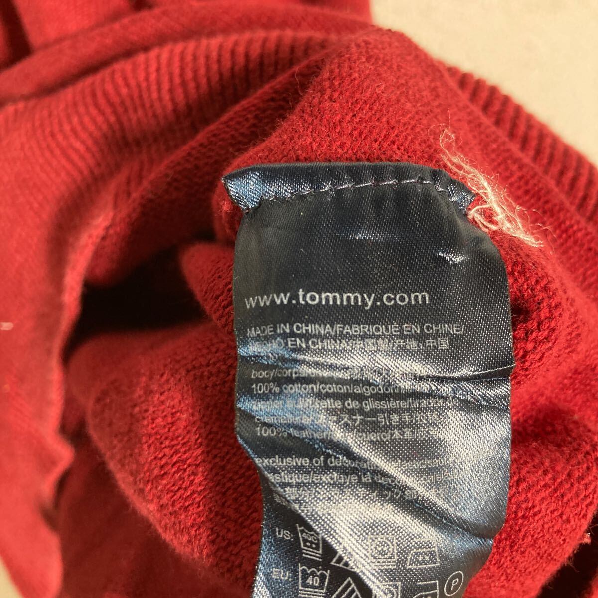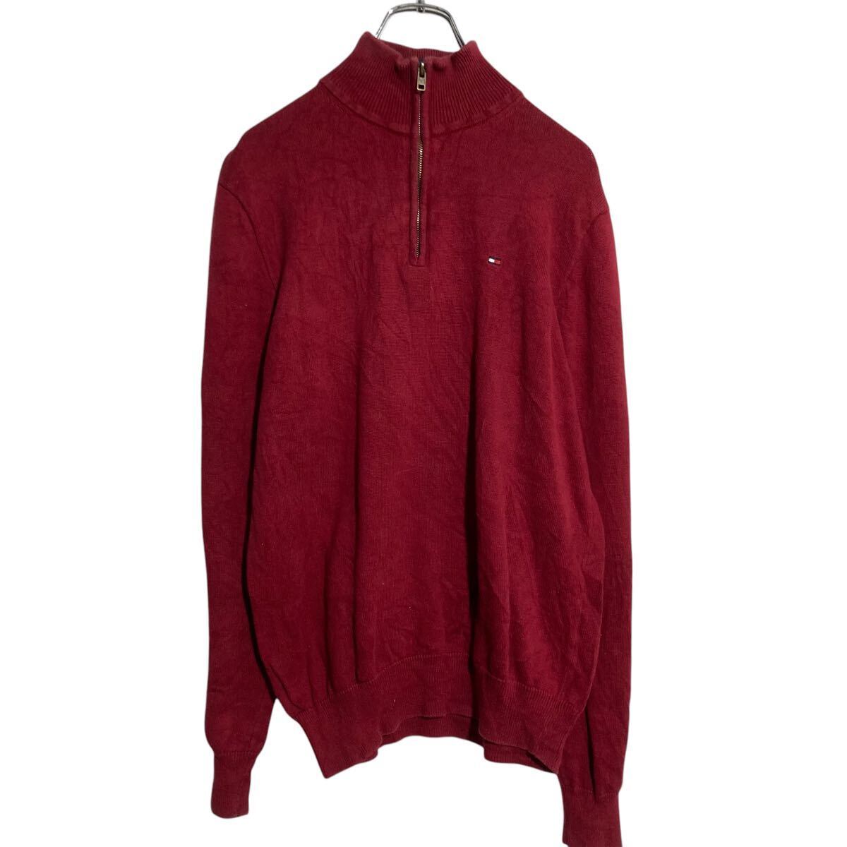 TOMMY HILFIGER ハーフジップ コットンニット セーター M レッド トミーヒルフィガー ワンポイントロゴ 古着卸 アメリカ仕入 a612-5980
