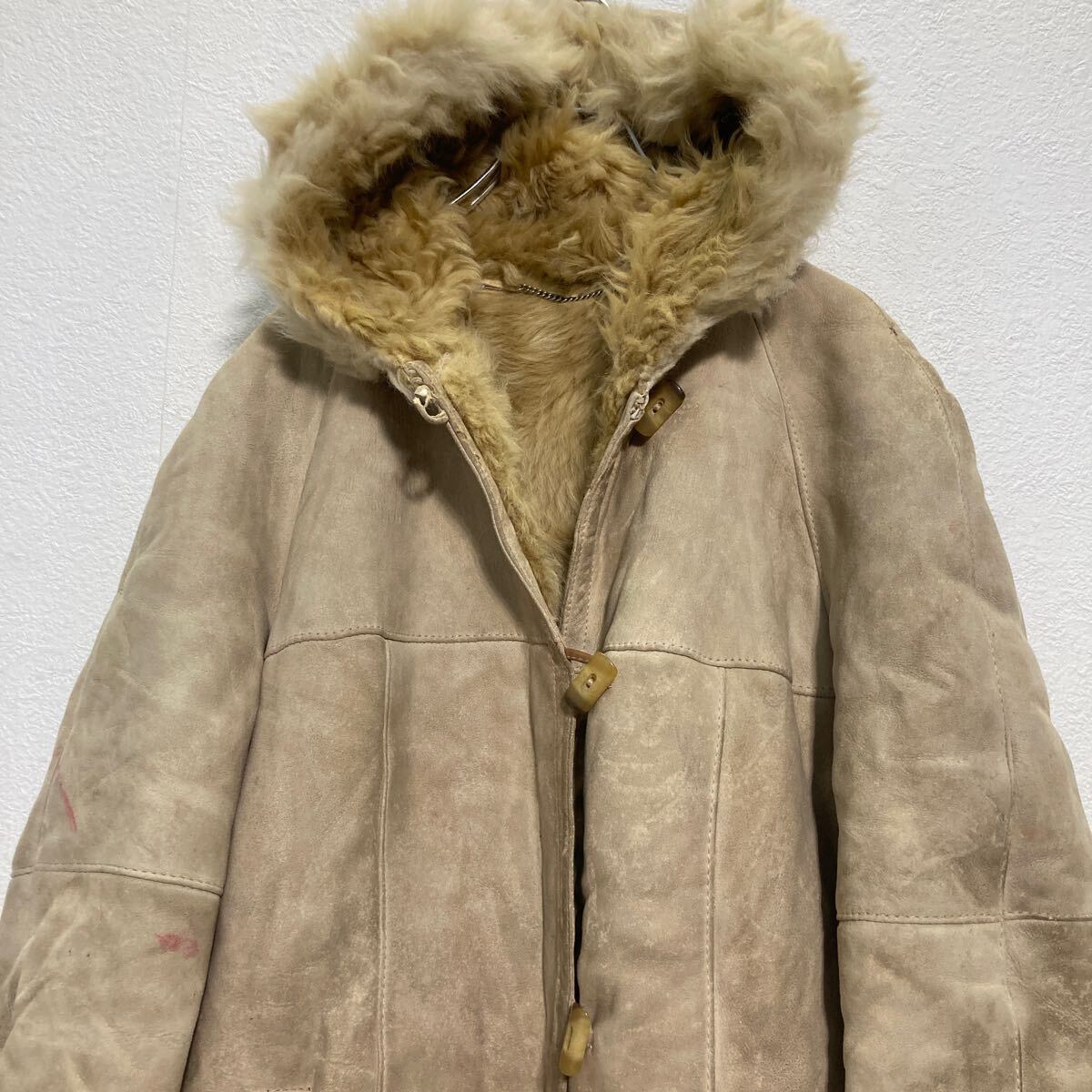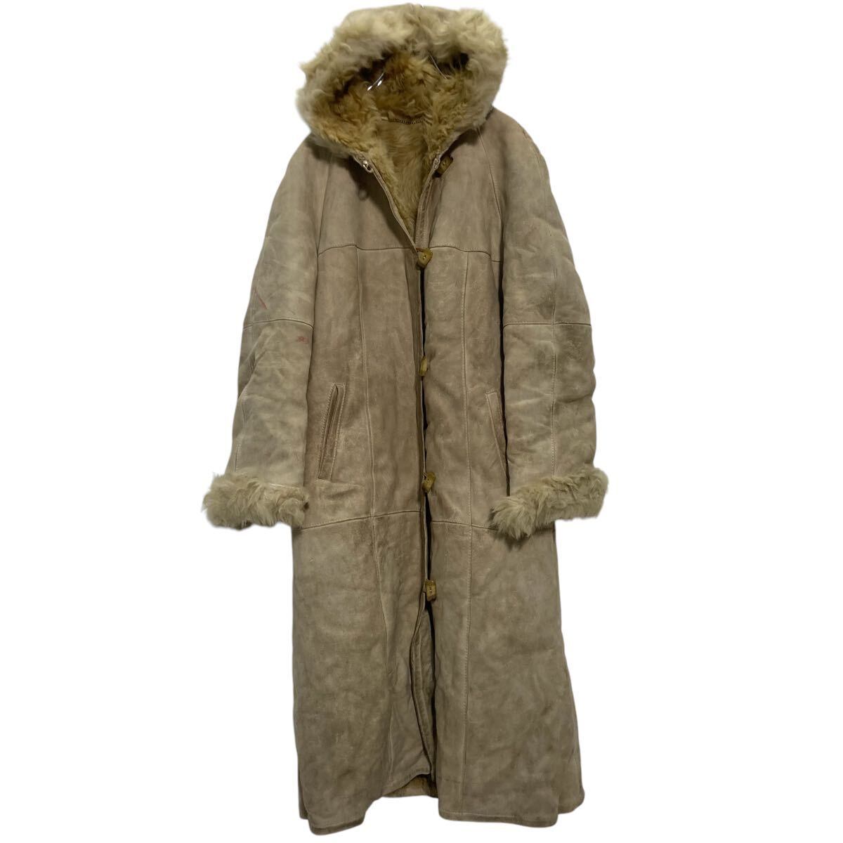 CHRIST フード付き ムートンコート レディース L ベージュ ロングコート ファー ボア トグルボタン 古着卸 アメリカ仕入 a612-5986