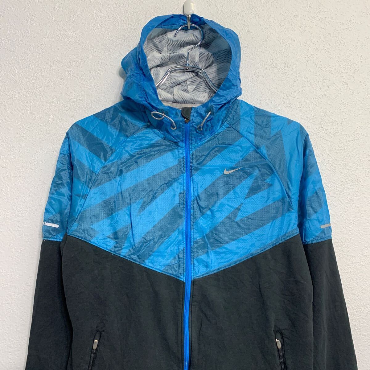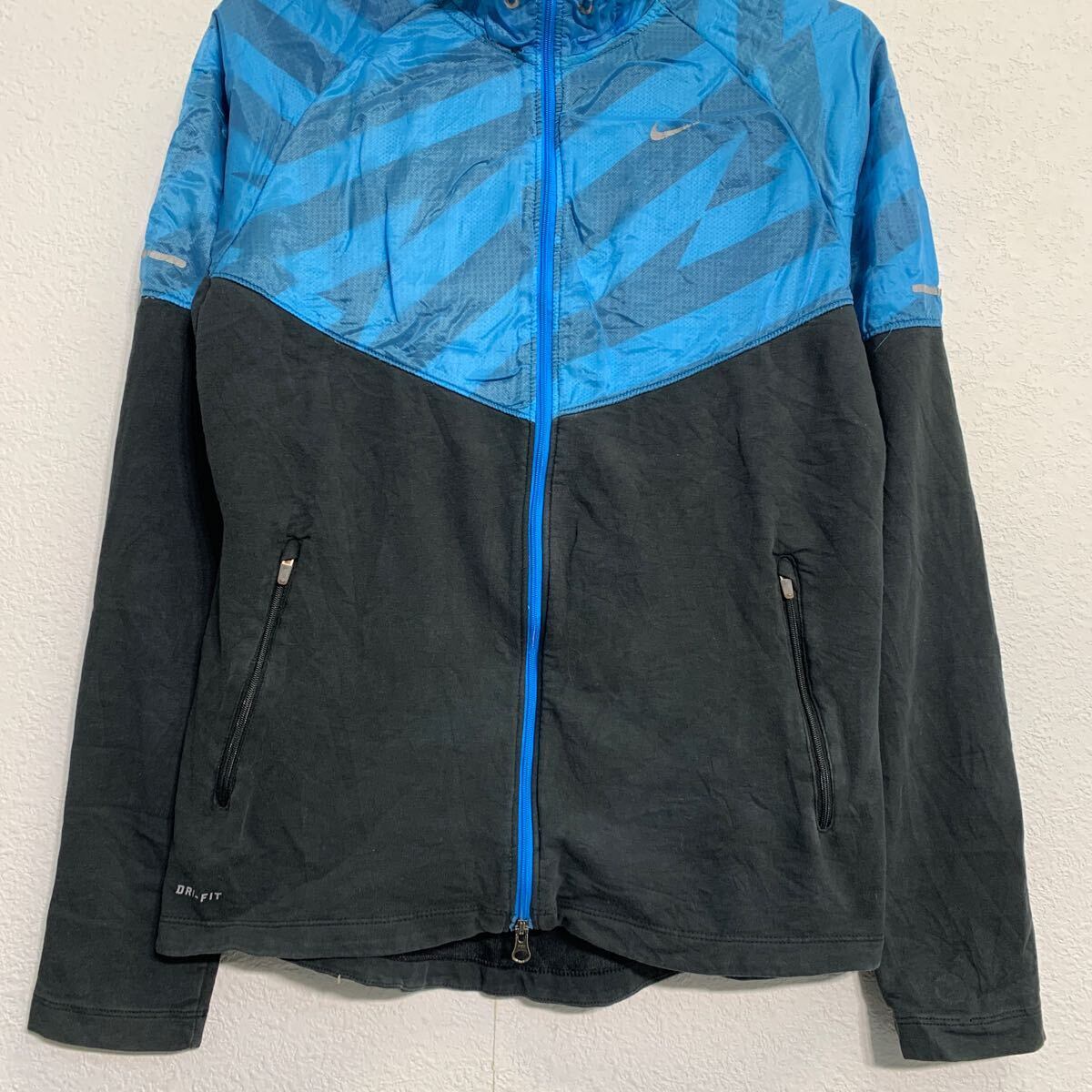 NIKE ジャケット M ライトブルー ブラック ナイキ ジップアップ ラグラン フード付き スポーティー 古着卸 アメリカ仕入 a612-6194