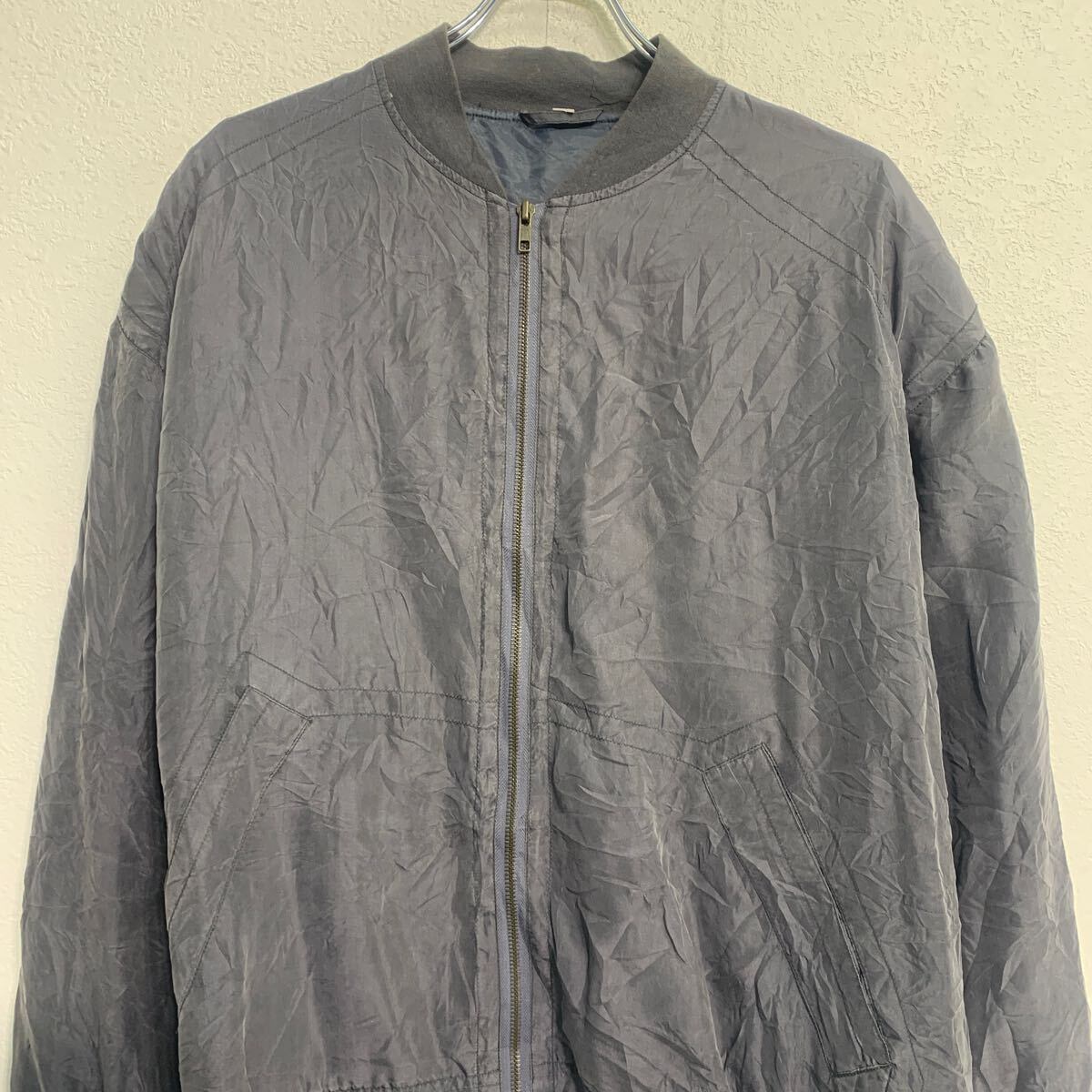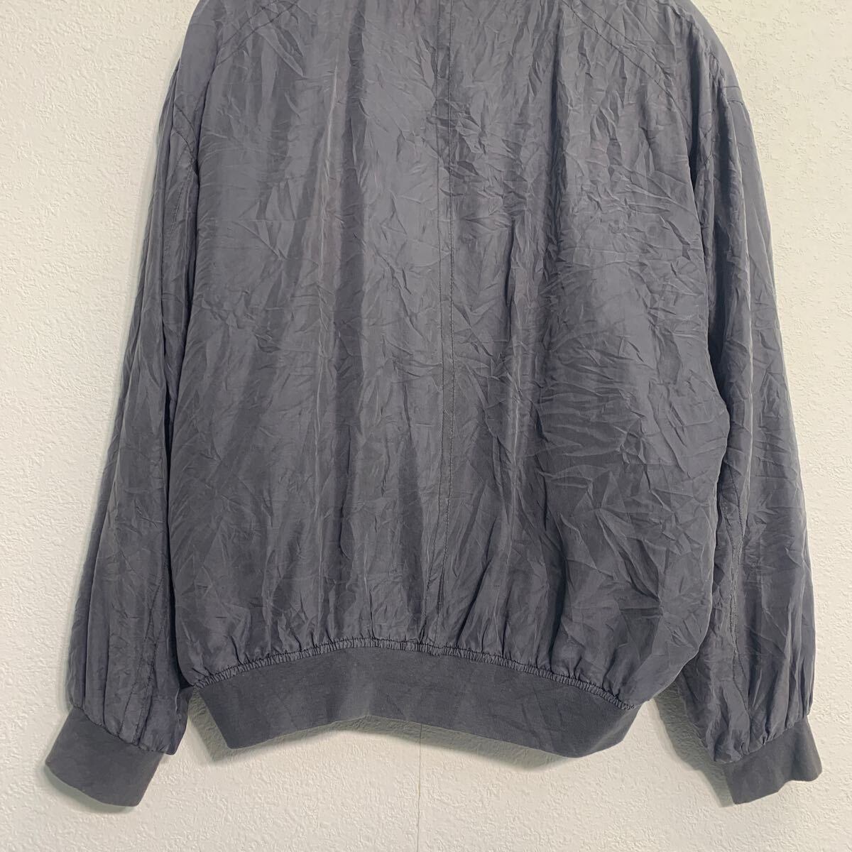 ジャケット M グレー ジップアップ シルク 肩パッド シンプル アウター 薄手 古着卸 アメリカ仕入 a612-6208
