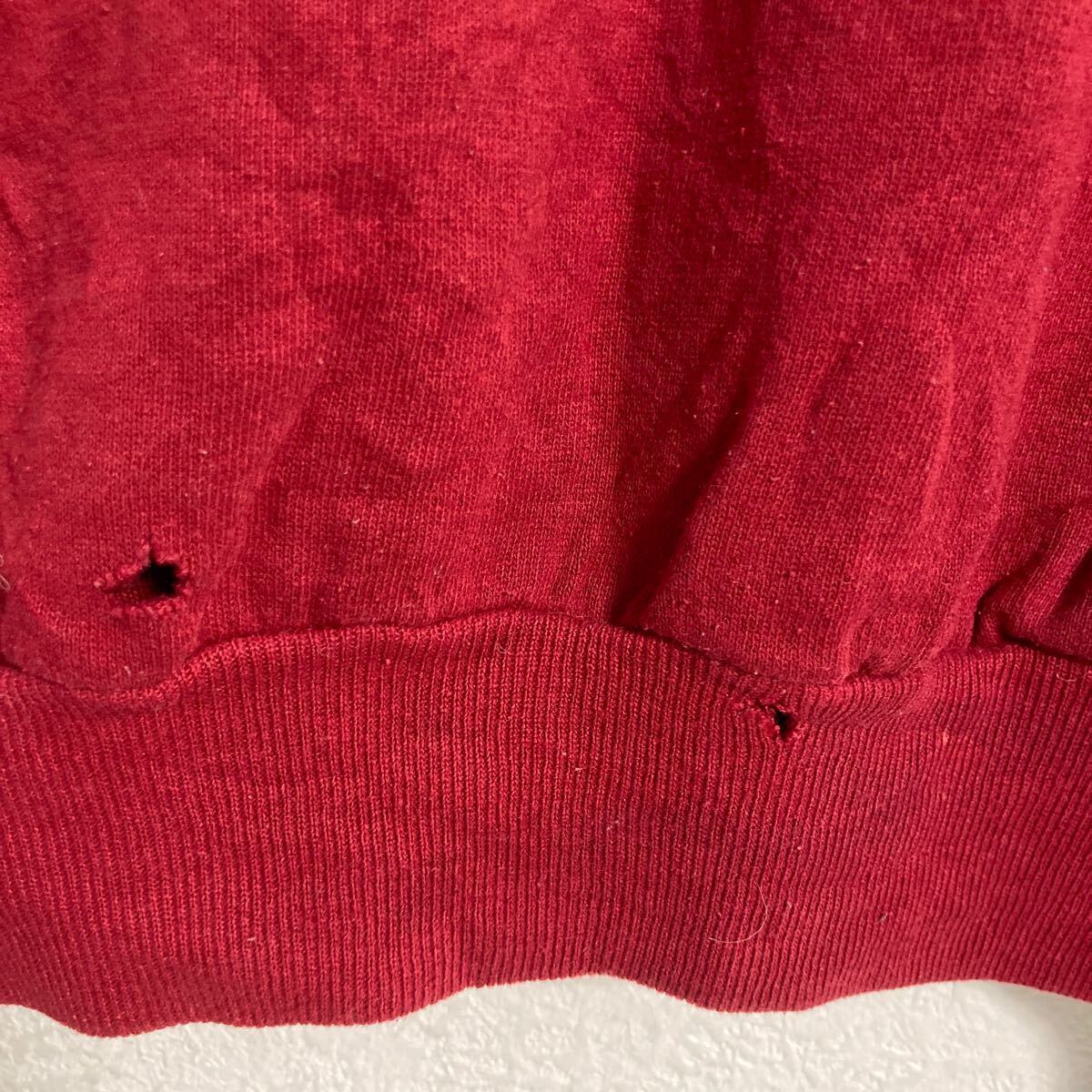 状態確認 D ランク品 左袖、前身頃に汚れがあります。 前身頃、後身頃、裾に複数穴があります。