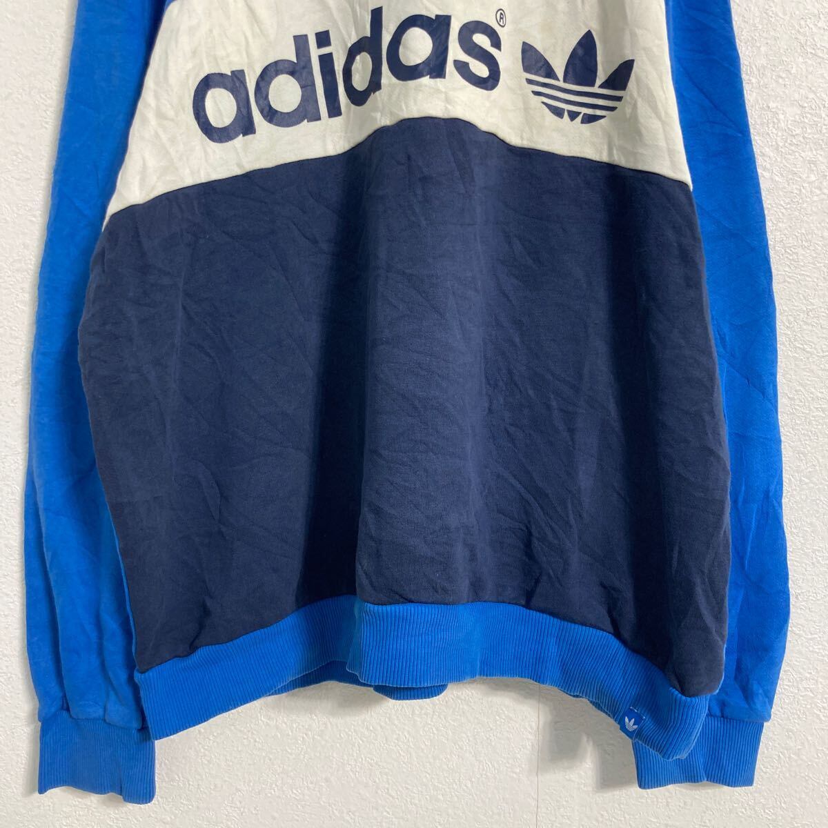 adidas ロゴスウェット トレーナー XL ブルー アディダス スポーツ プルオーバー 裏起毛 ビッグサイズ 古着卸 アメリカ仕入 a612-6250