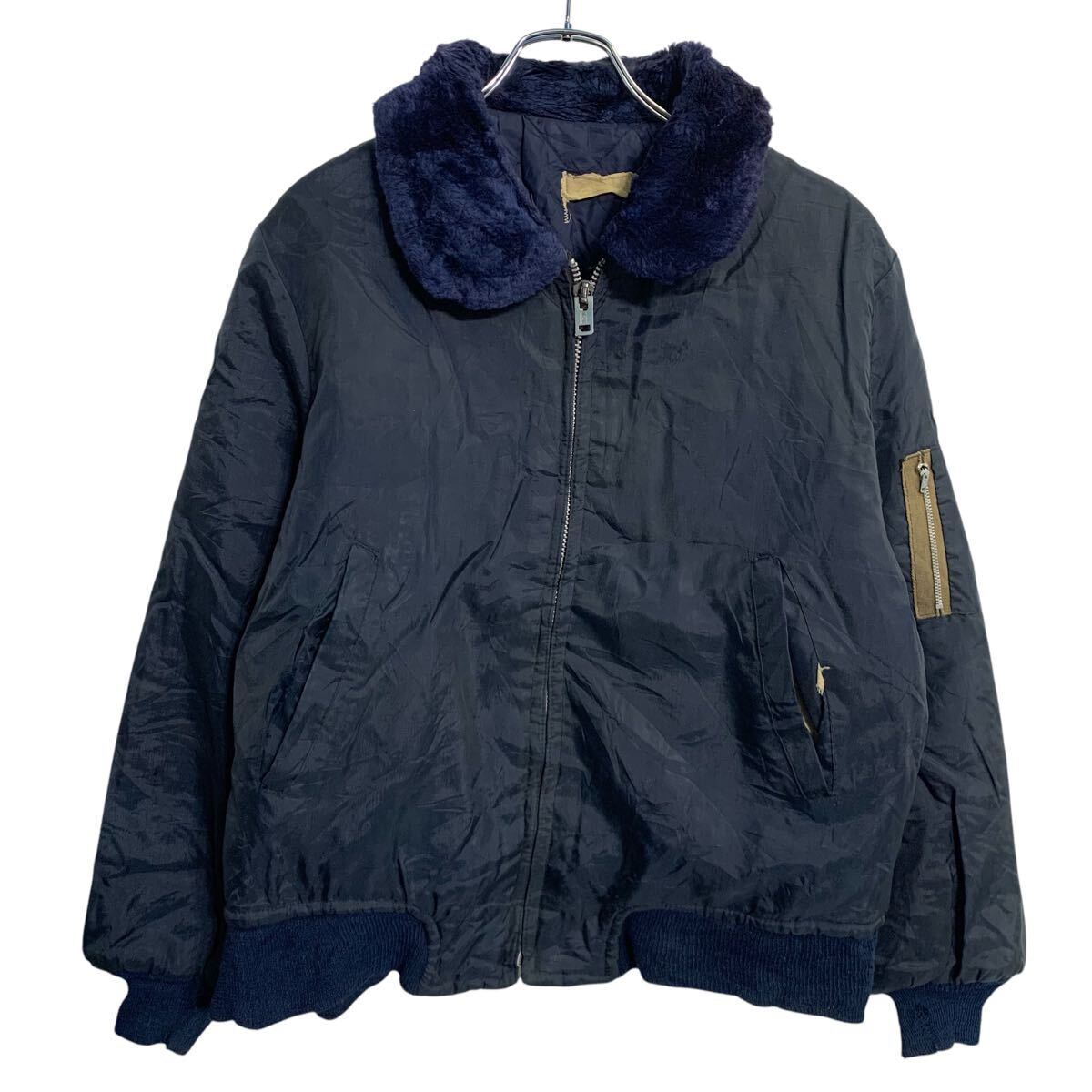 中綿ジャケット M ネイビー ジップアップ 襟ボア 切替 ブルゾンジャケット ワーク アウター 古着卸 アメリカ仕入 a612-6357