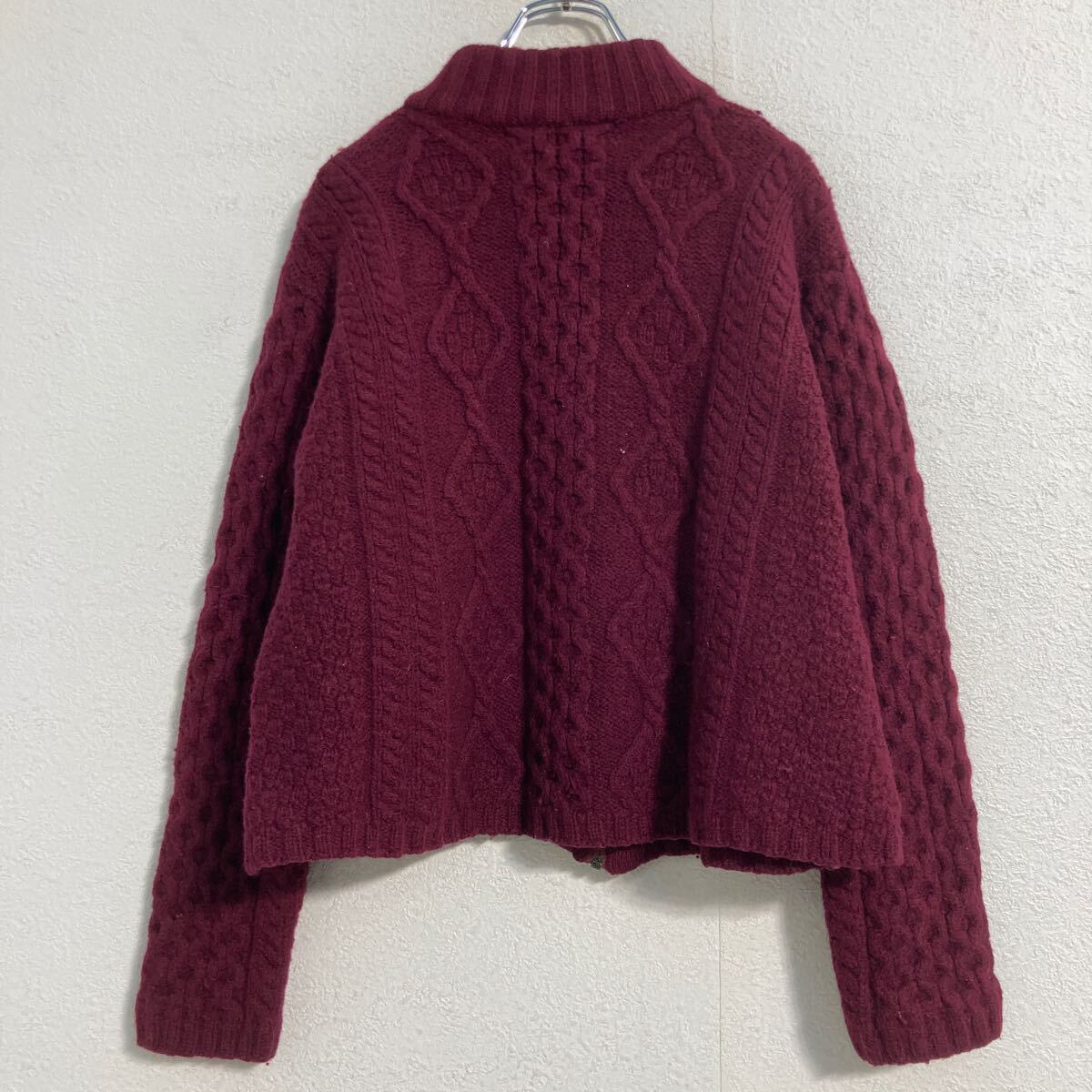INIS CRAFTS ウール ニット セーター レディース L ボルドー ジップアップ モックネック アイルランド製 古着卸 アメリカ仕入 a612-6413