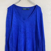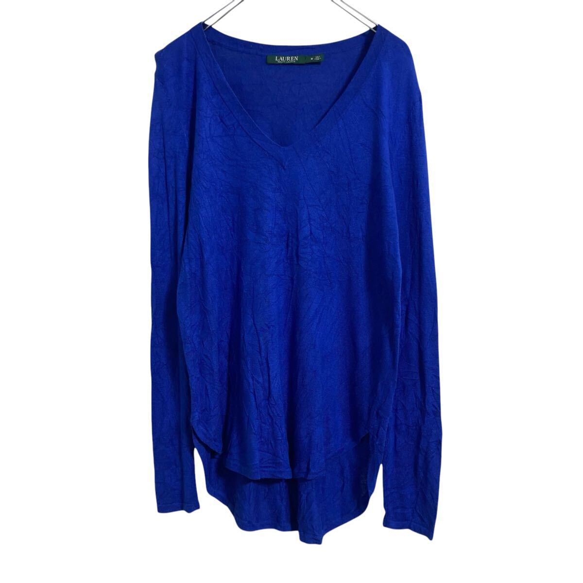 LAUREN RALPH LAUREN シルク混 ニット セーター M ブルー ローレンラルフローレン Vネック 古着卸 アメリカ仕入 a612-6426