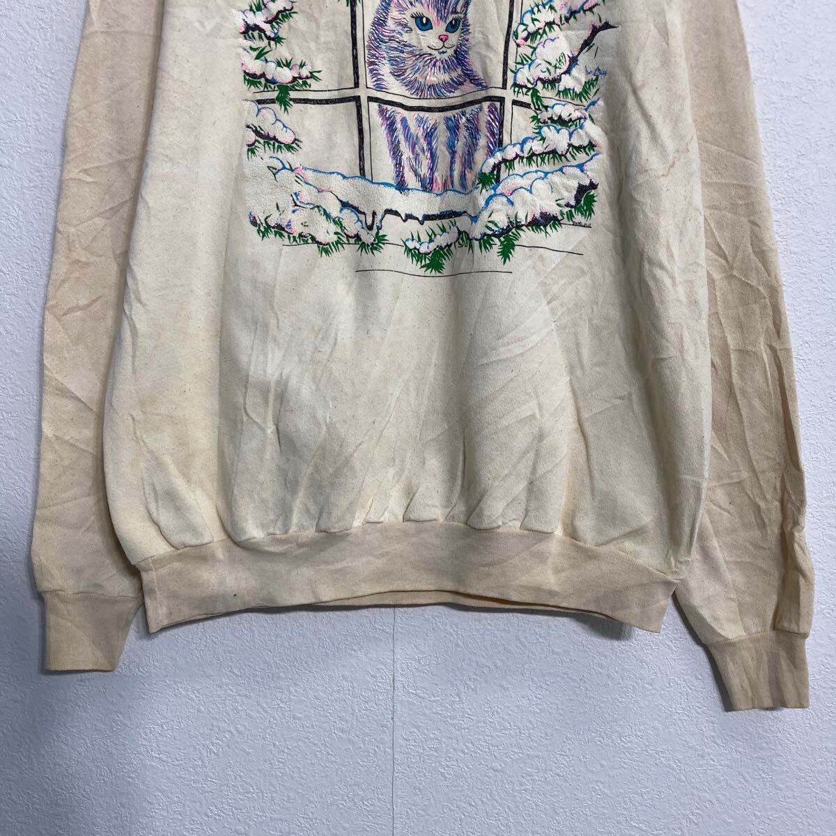 プリントスウェット トレーナー レディース L 程 アイボリー 猫 古着卸 アメリカ仕入 a612-6491