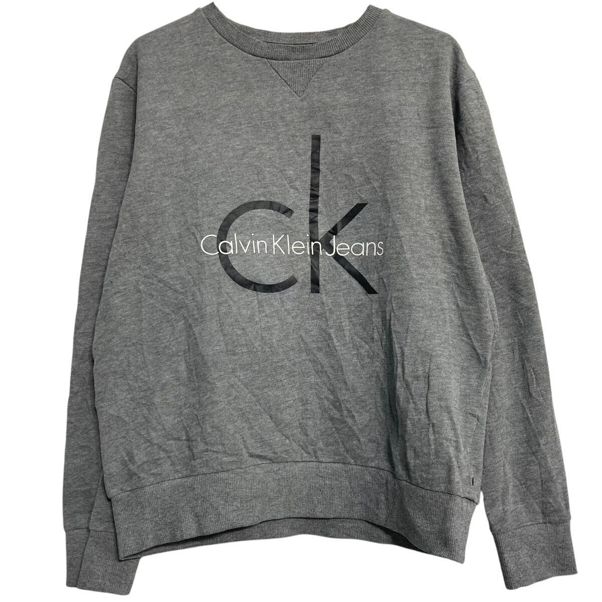 Calvin Klein ロゴスウェット トレーナー M ダークグレー カルバンクライン プルオーバー 裏起毛 古着卸 アメリカ仕入 ギルダン a612-6509