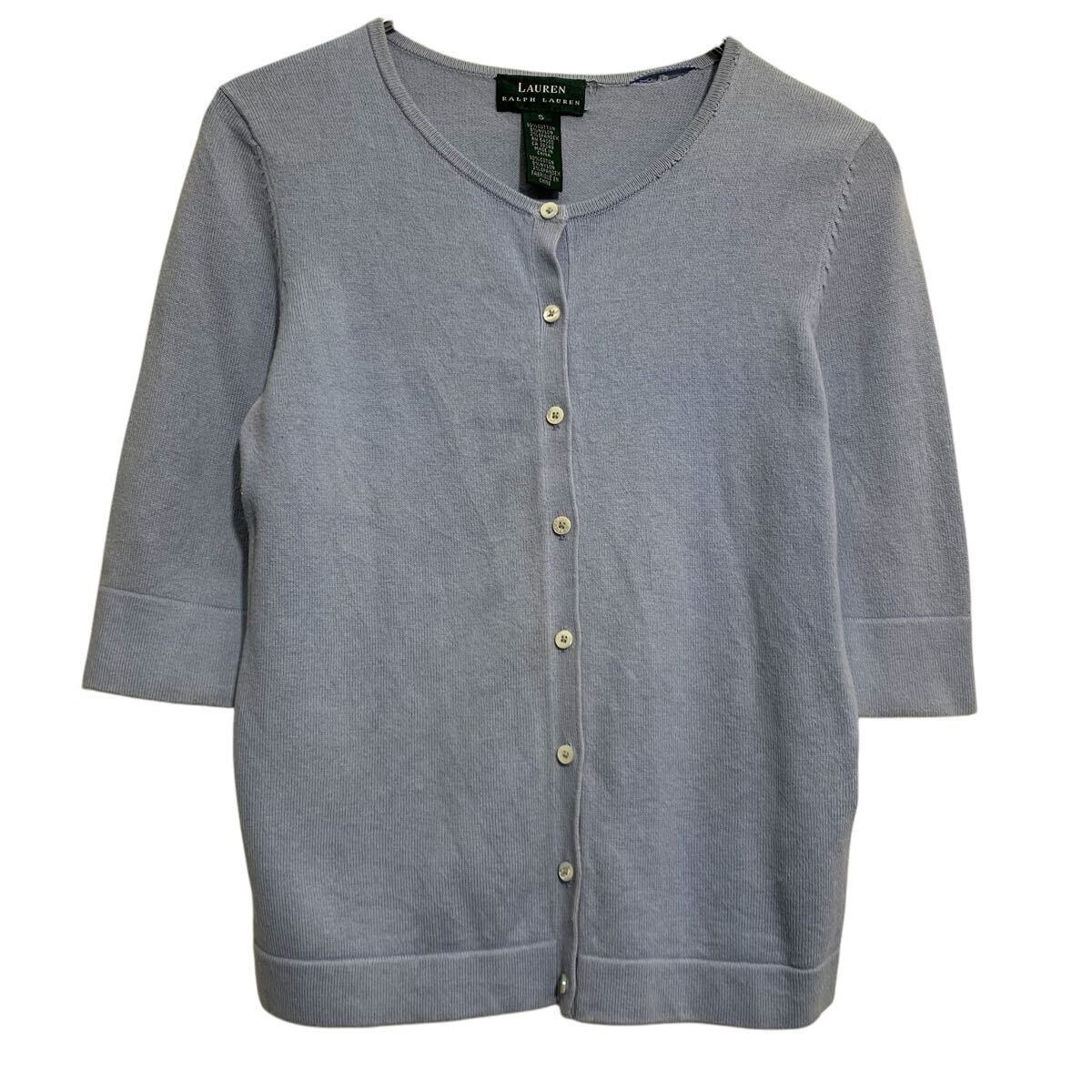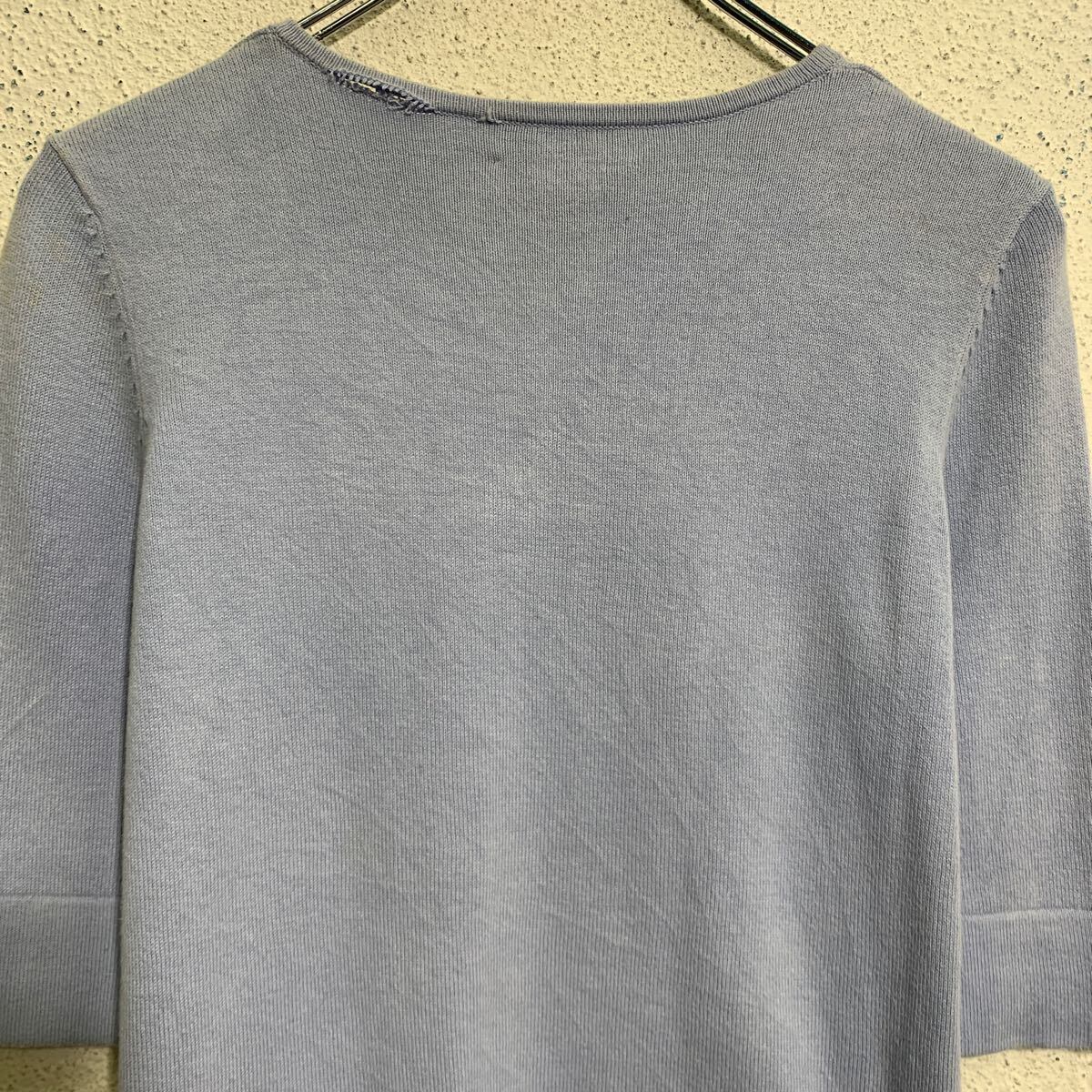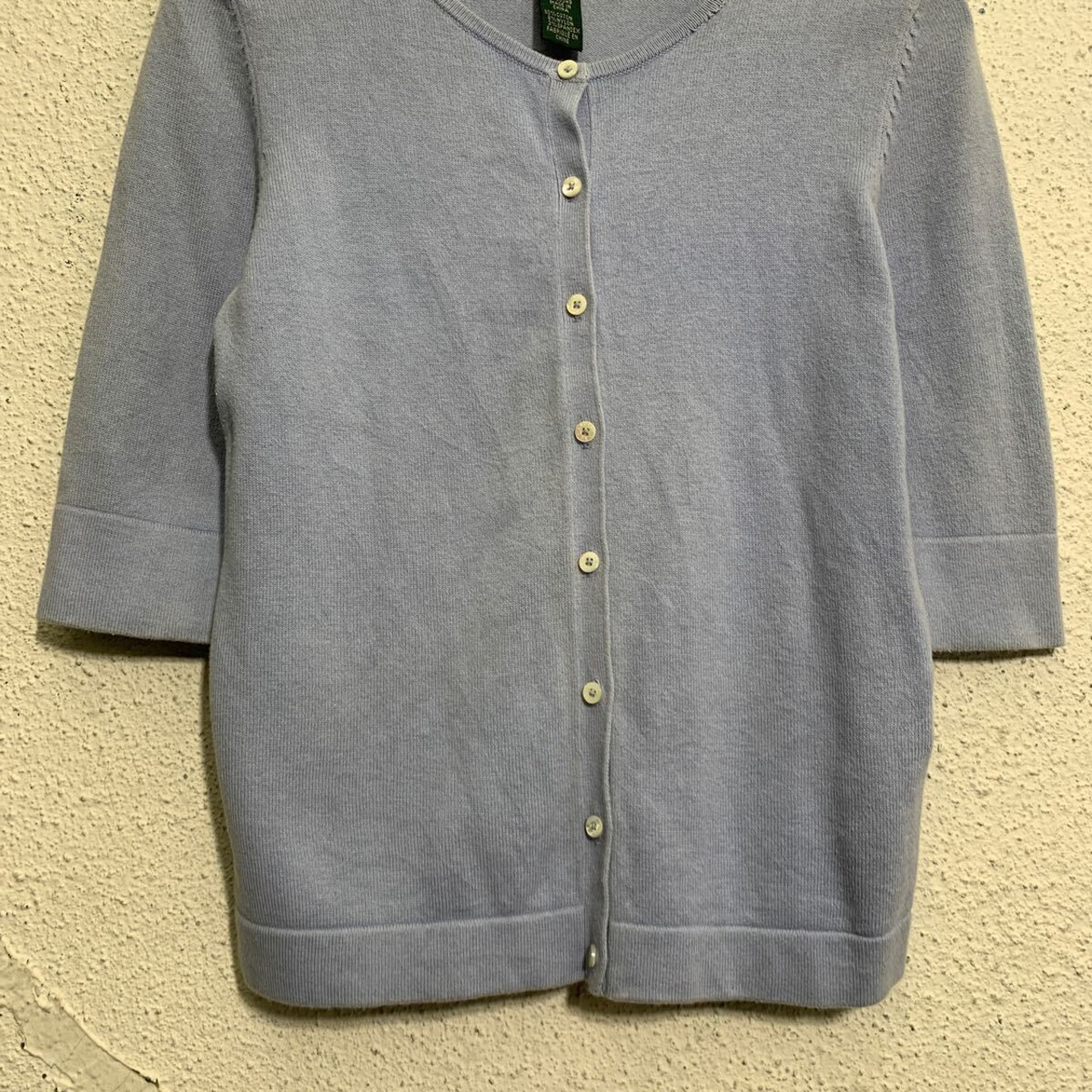 LAUREN RALPH LAUREN 半袖 ニット セーター コットン混 S ブルー ローレンラルフローレン ボタン 古着卸 アメリカ仕入 a612-6525