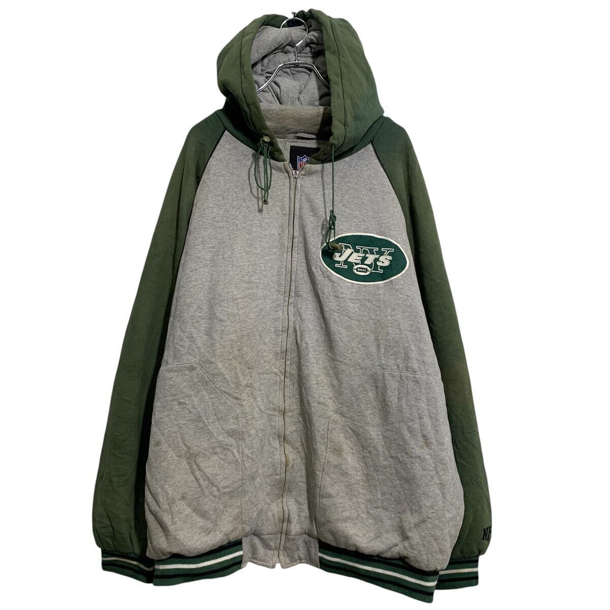 NFL ジャケット 3XL グレー グリーン エヌエフエル ジップアップ ビッグサイズ バックプリント ラグラン 古着卸 アメリカ仕入 a612-6526
