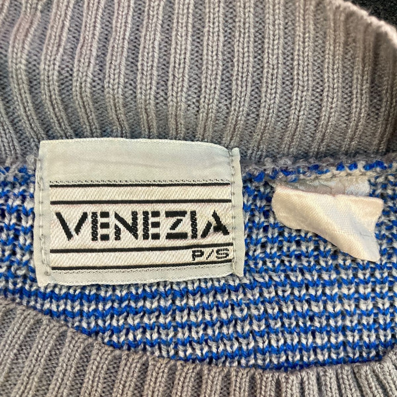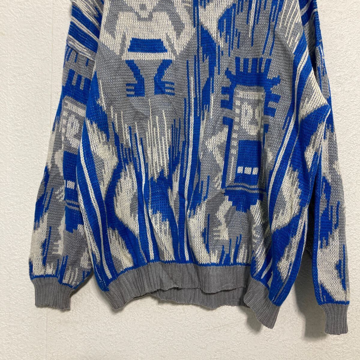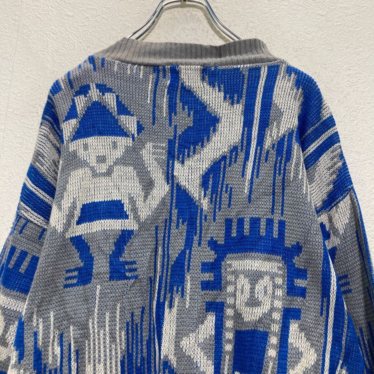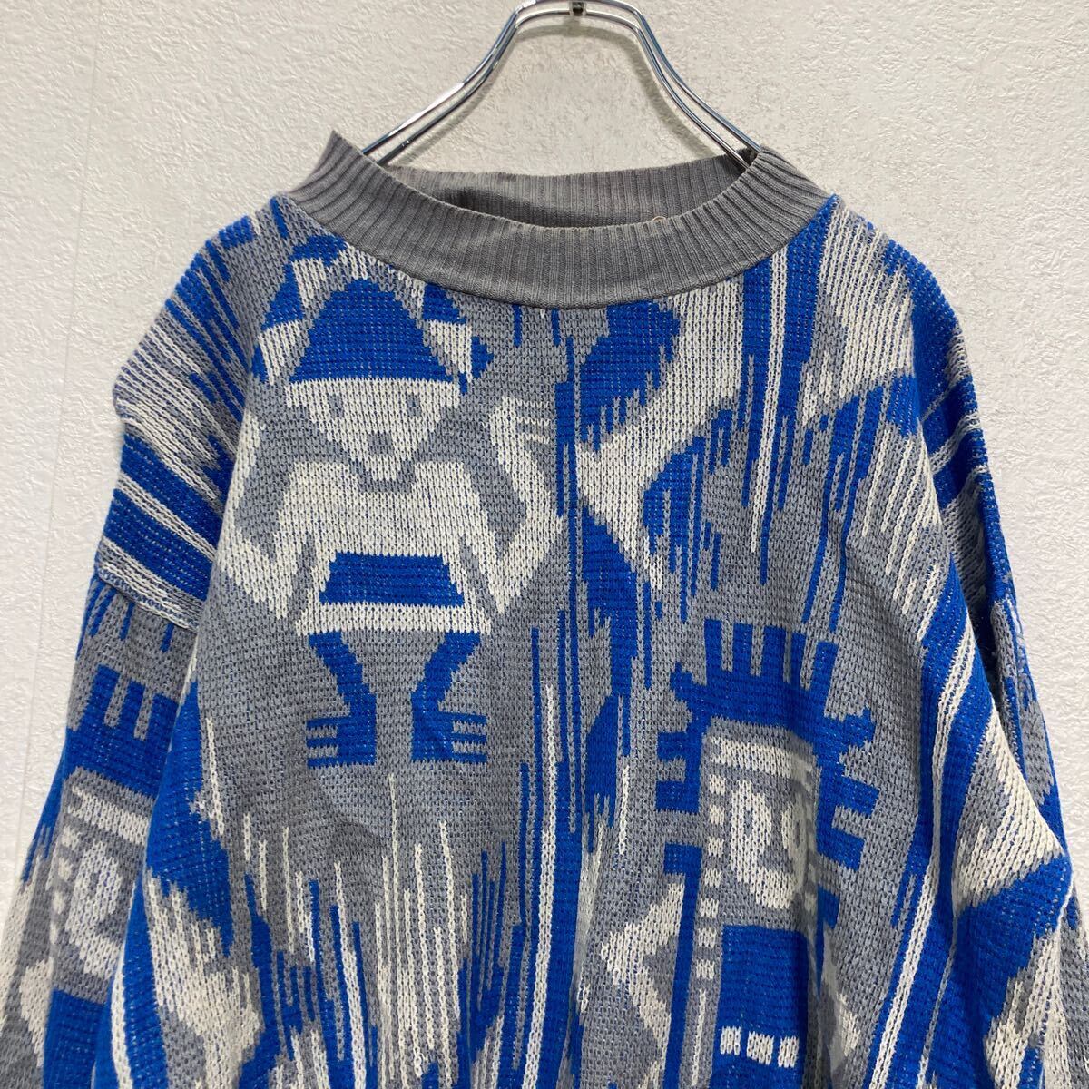 VENEZIA ニット セーター S グレー ブルー 総柄 古着卸 アメリカ仕入 a612-6535