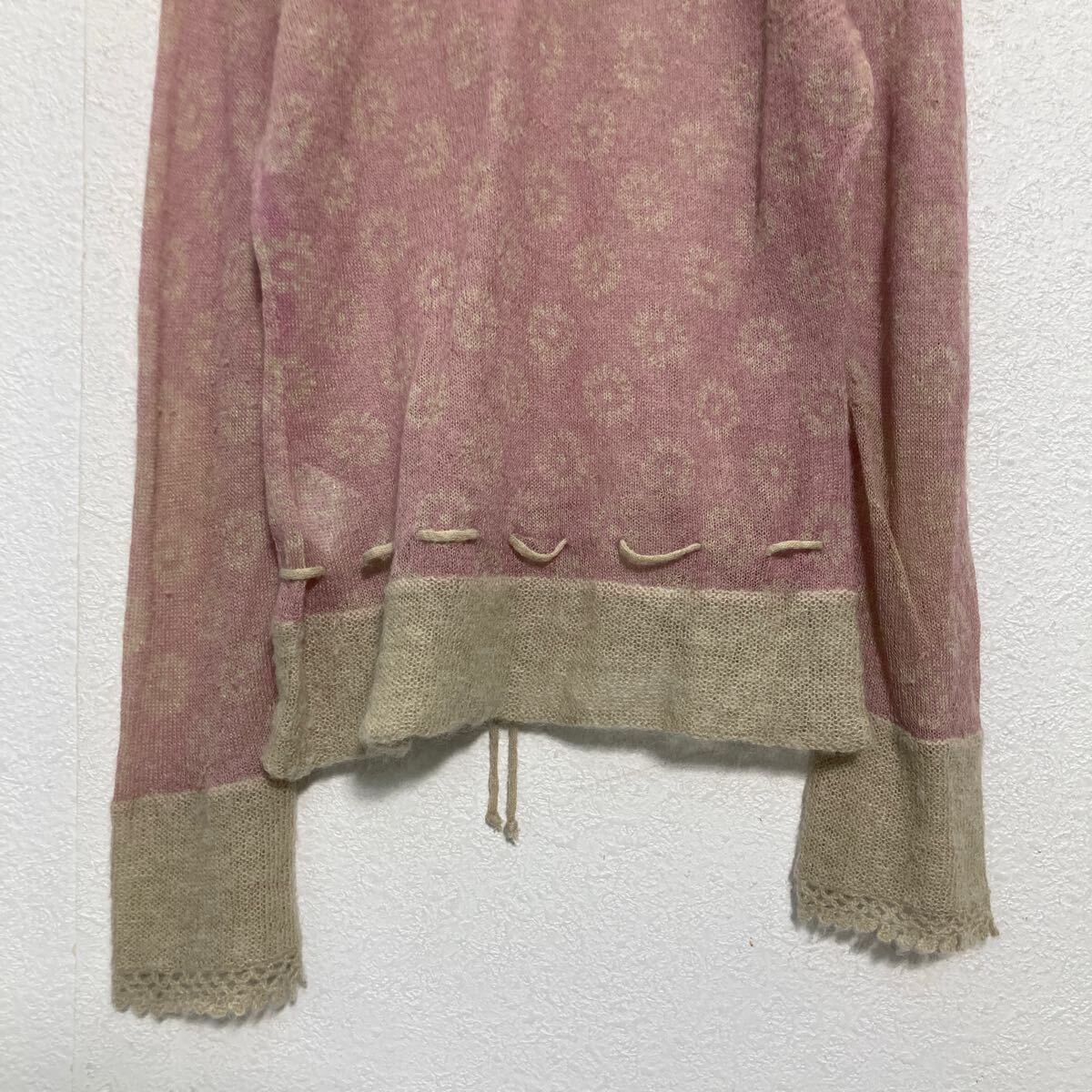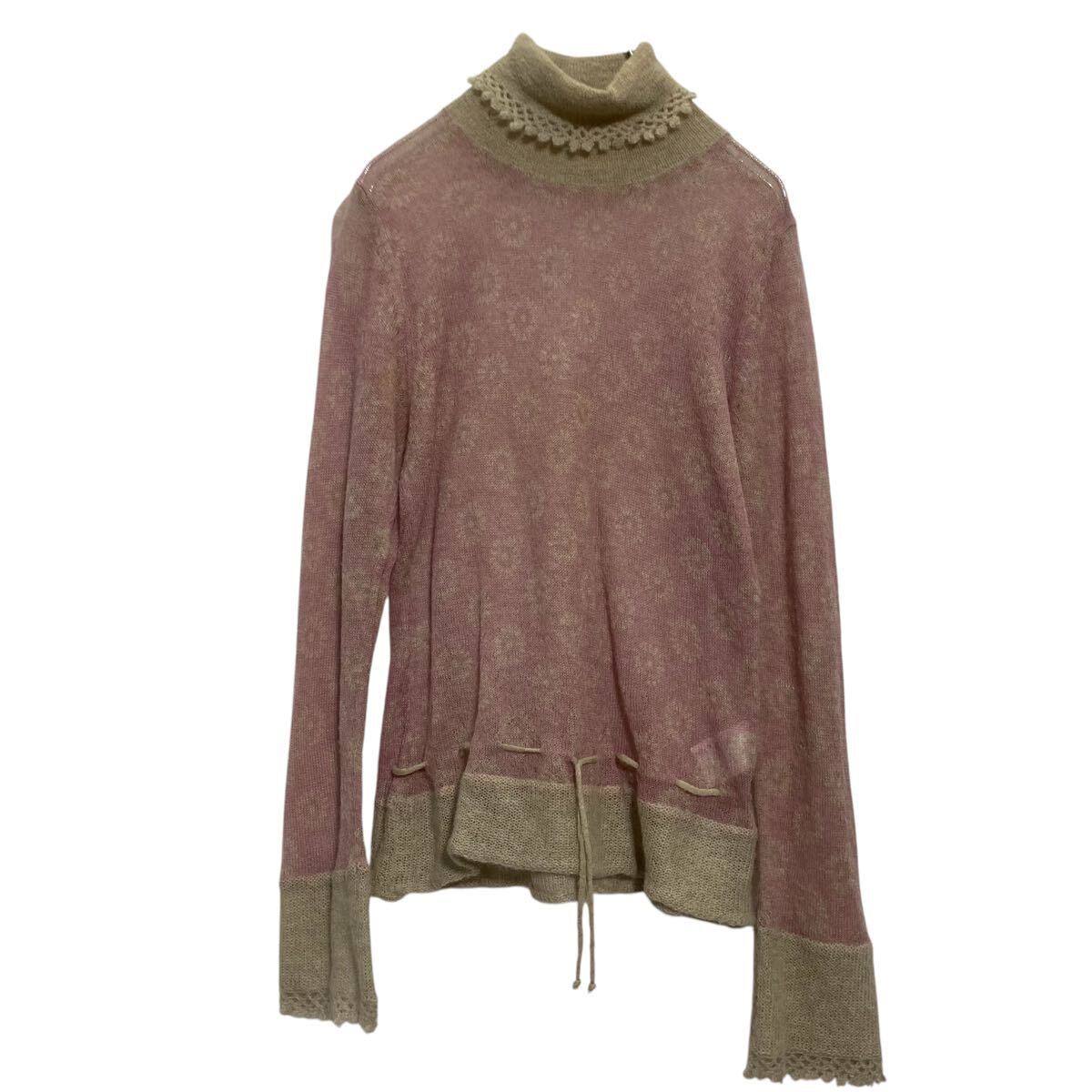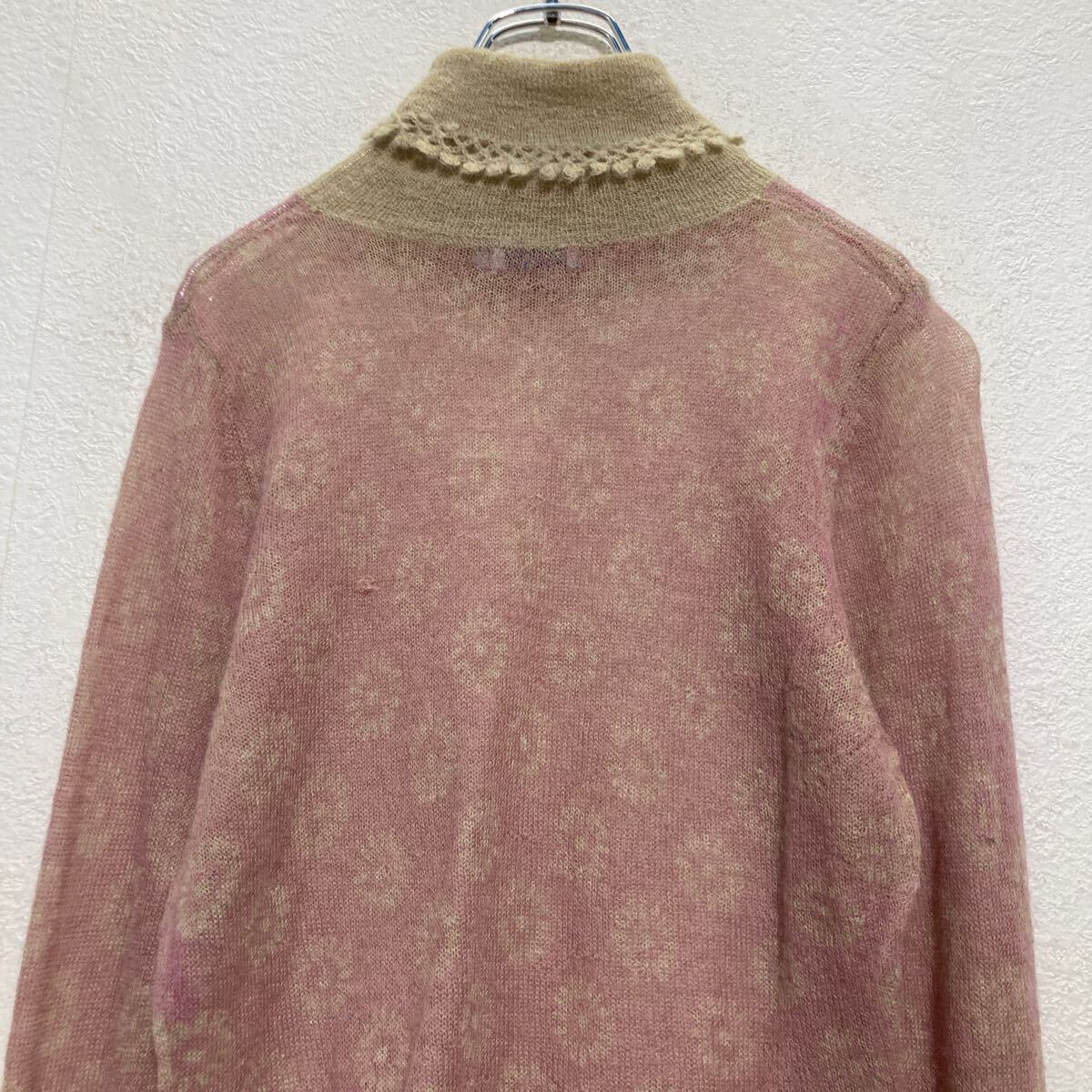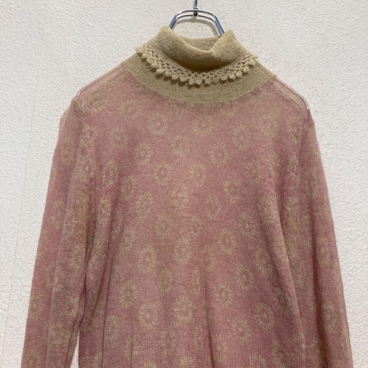gndividual ウール混紡 タートルネック シアーニット セーター レディース XL ピンク ベージュ 花柄 古着卸 アメリカ仕入 a612-6552