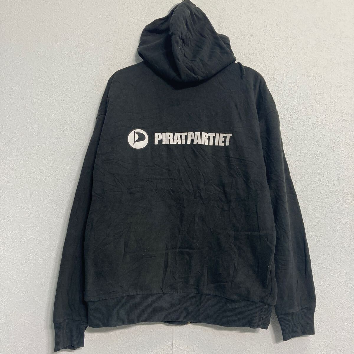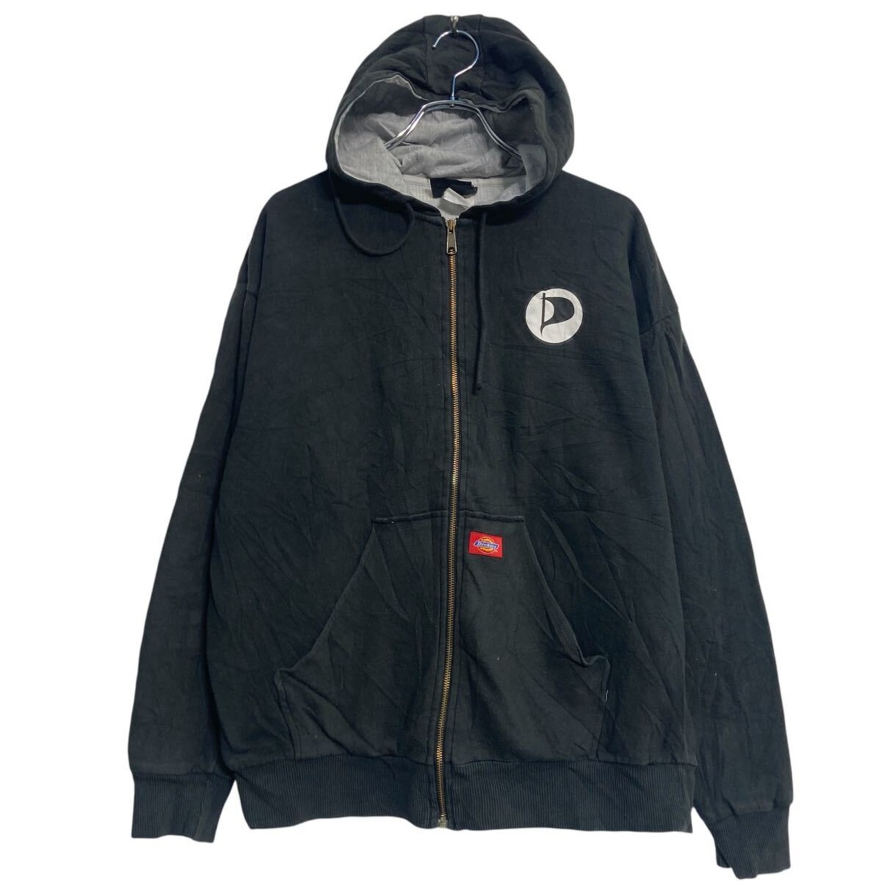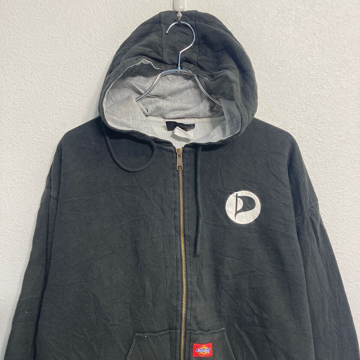 Dickies プリントスウェット パーカー L ブラック ディッキーズ ジップアップ バッグプリント ポケット 古着卸 アメリカ仕入 a612-6568