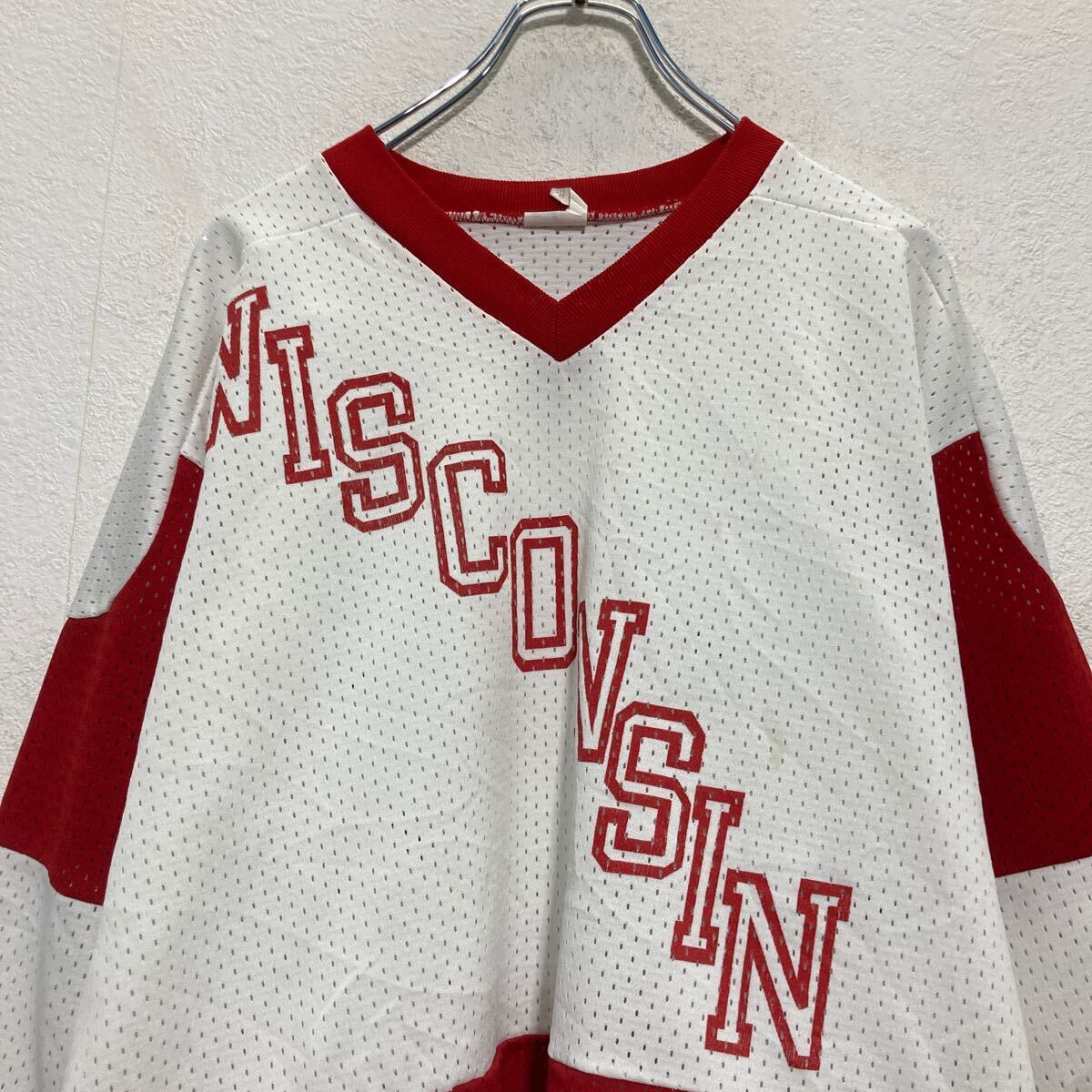 ゲームシャツ 3XL〜 レッド ホワイト 切替 メッシュ WISCONSIN ホッケーシャツ 古着卸 アメリカ仕入 a612-6570