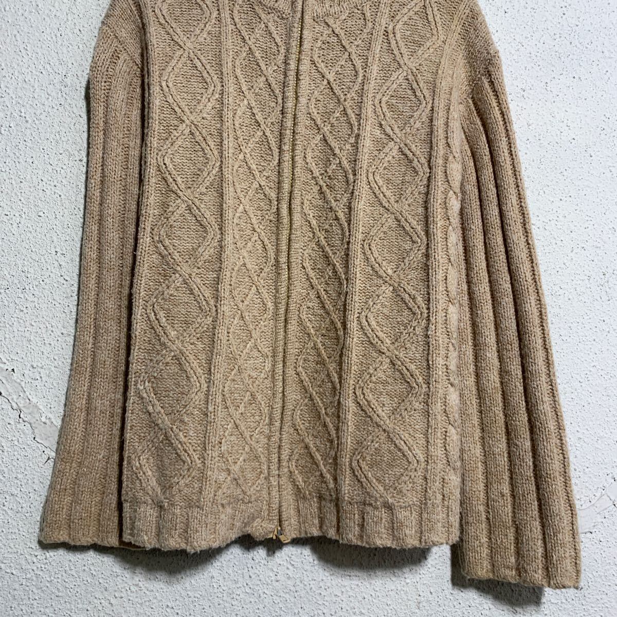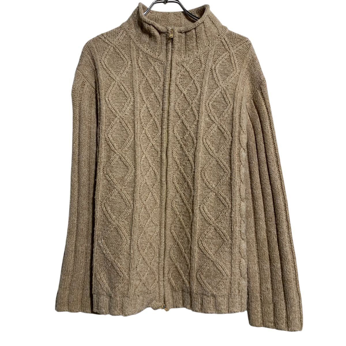 ニット セーター ウール混 L ベージュ系 ジップアップ ダブルジップ ケーブルニット 秋冬 古着卸 アメリカ仕入 a612-6582