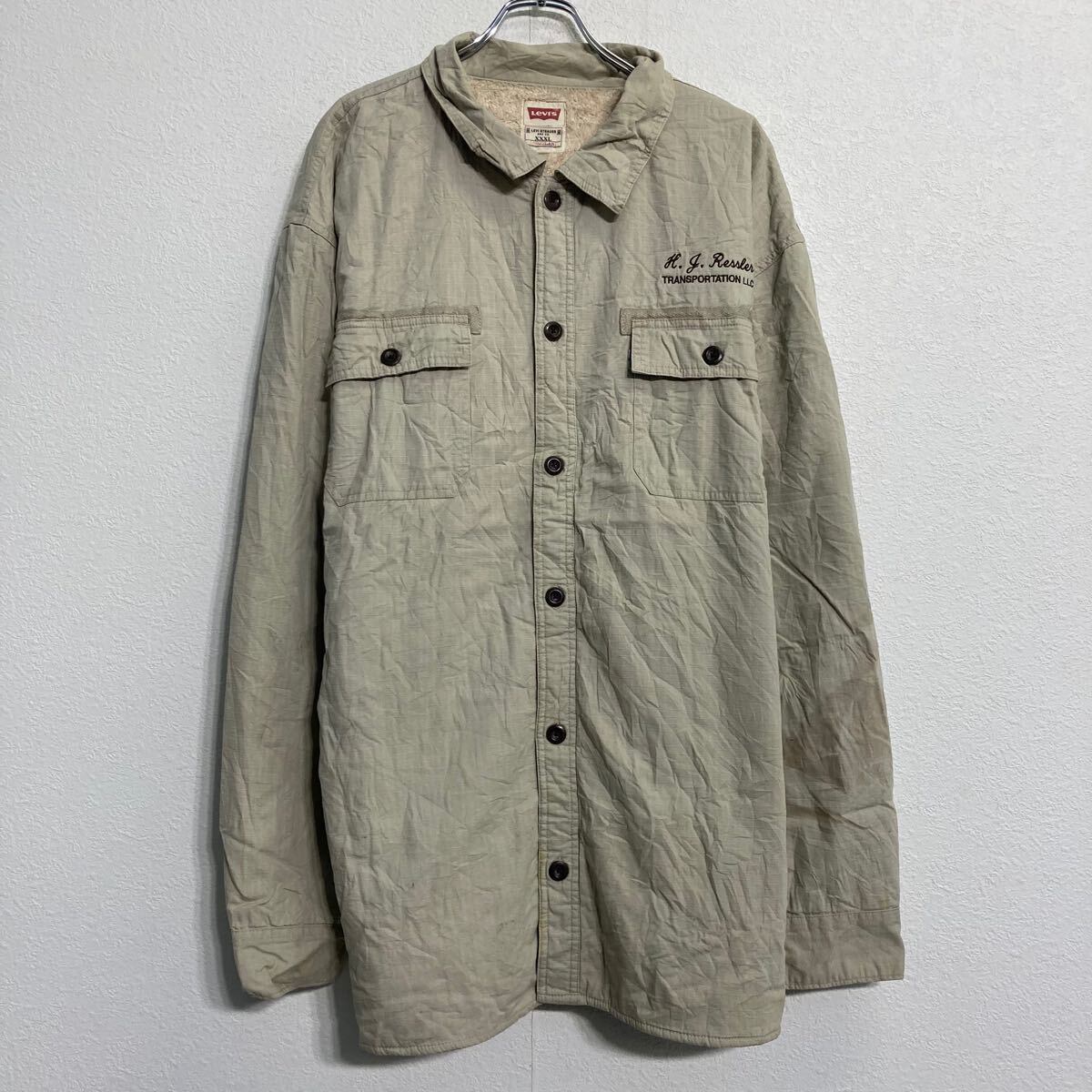 Levi’s シャツジャケット リーバイス XXXL ベージュ ビッグサイズ 裏起毛 ボタン 防寒 古着卸 アメリカ仕入 a612-6609