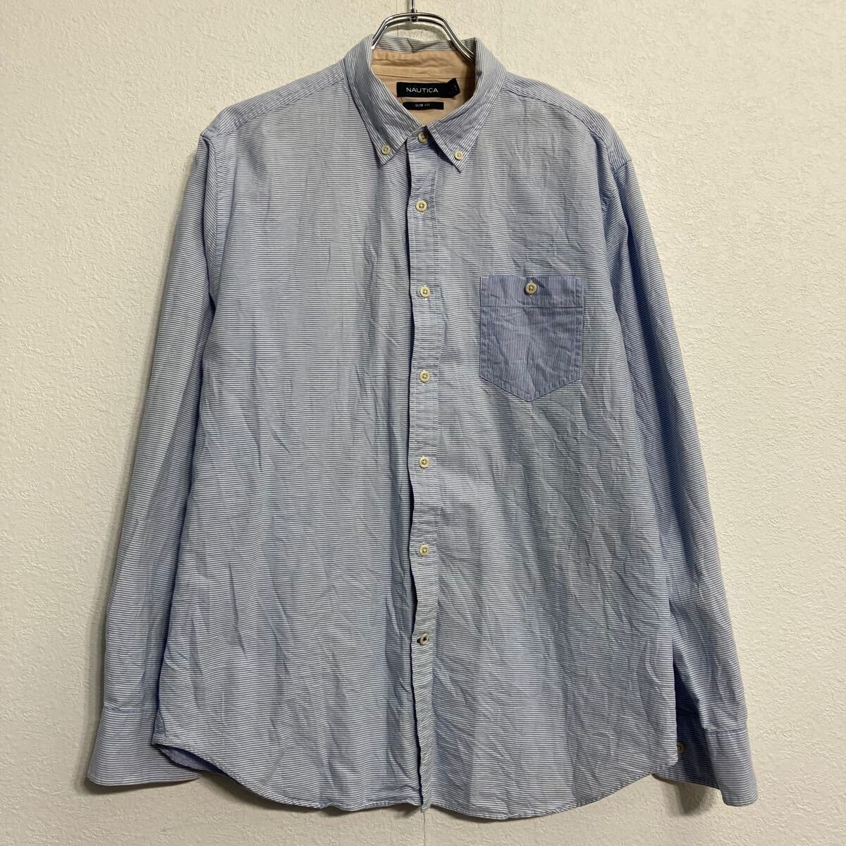 NAUTICA 長袖 ボーダーシャツ ノーティカ L ブルー ノーティカ ボタンダウン ポケット 古着卸 アメリカ仕入 a612-6667