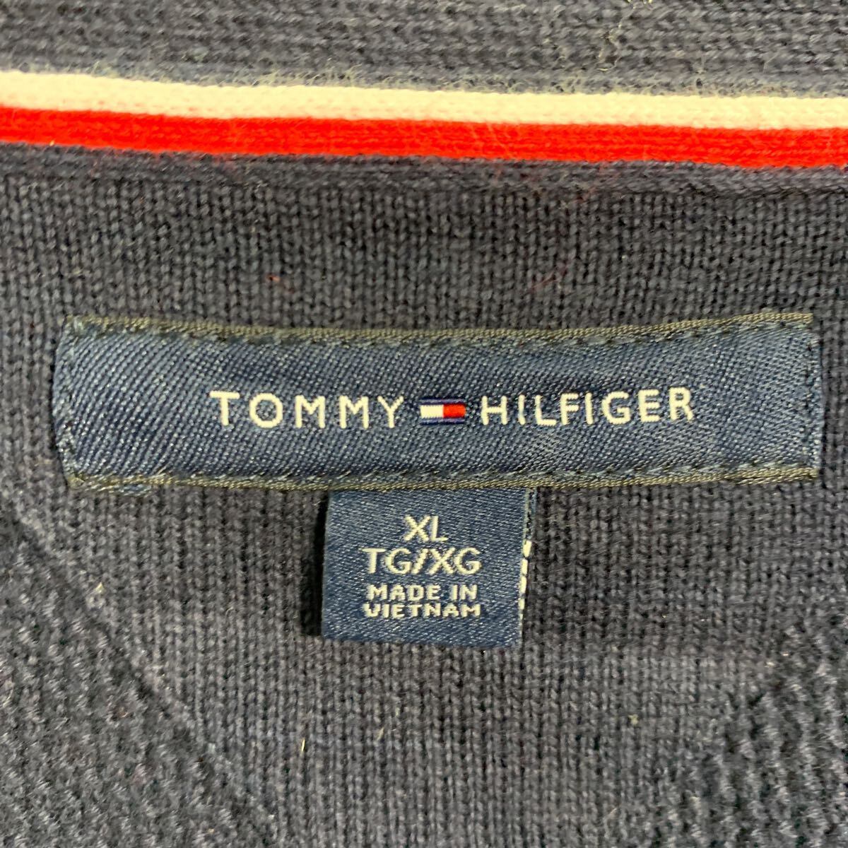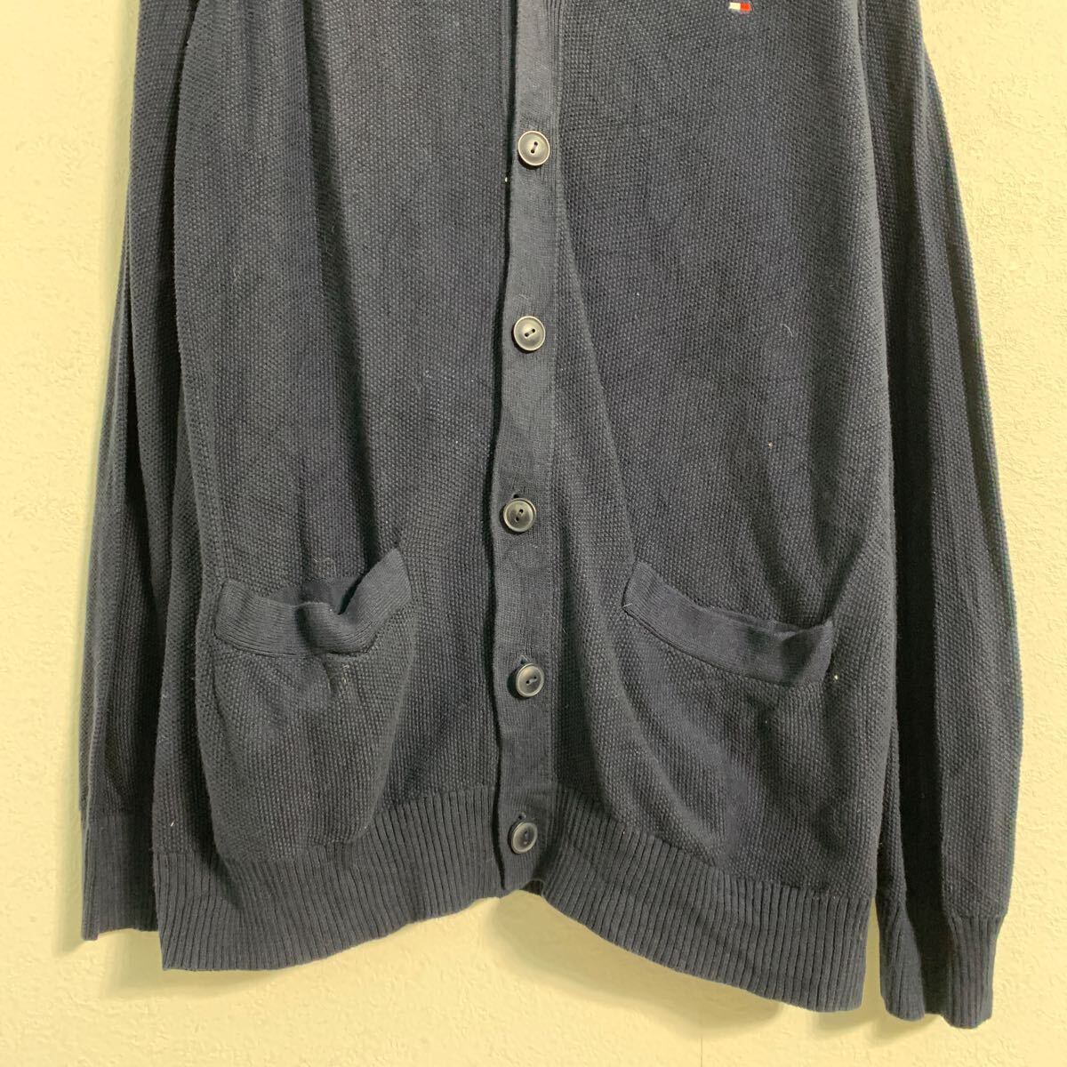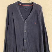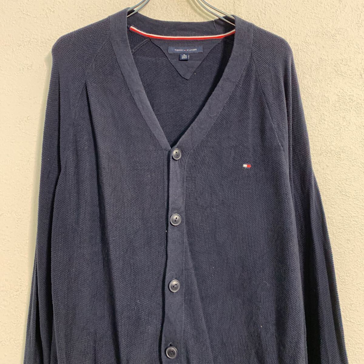 TOMMY HILFIGER コットンニット セーター カーディガン XL ネイビー トミーヒルフィガー ボタン ロゴ 秋冬 古着卸 アメリカ仕入 a612-6700