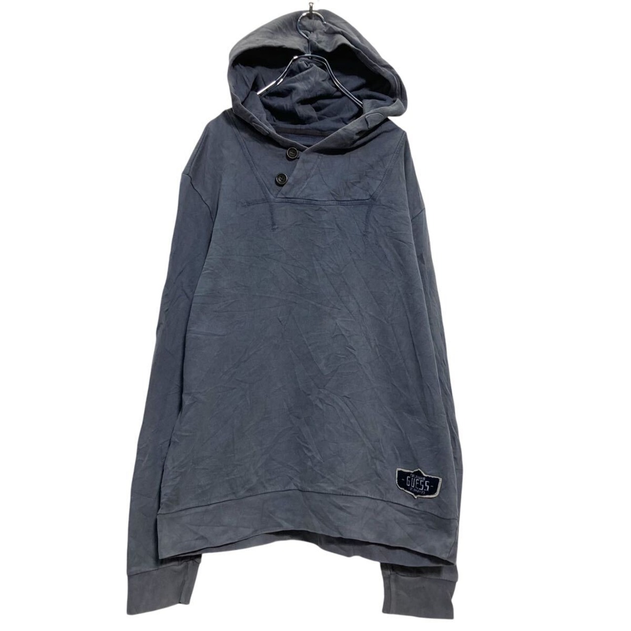 GUESS ロゴスウェット パーカー XL ブルーグレー ゲス プルオーバー ボタン付 ビッグサイズ 古着卸 アメリカ仕入 a612-6707
