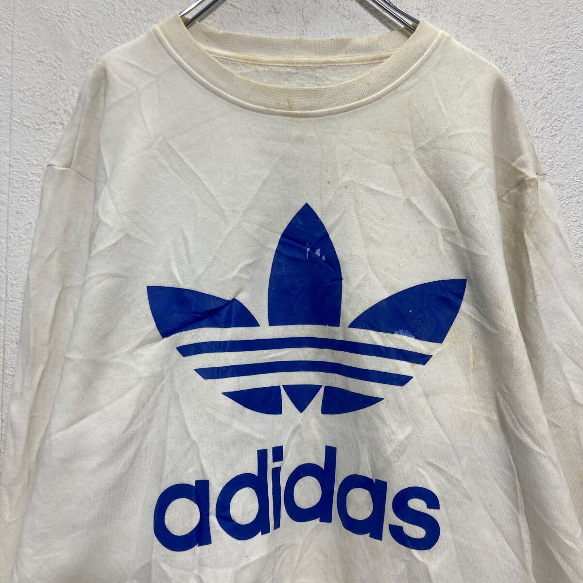 adidas ロゴスウェット トレーナー M ホワイト ブルー アディダス スポーツ プルオーバー 裏起毛 古着卸 アメリカ仕入 グレー a612-6740