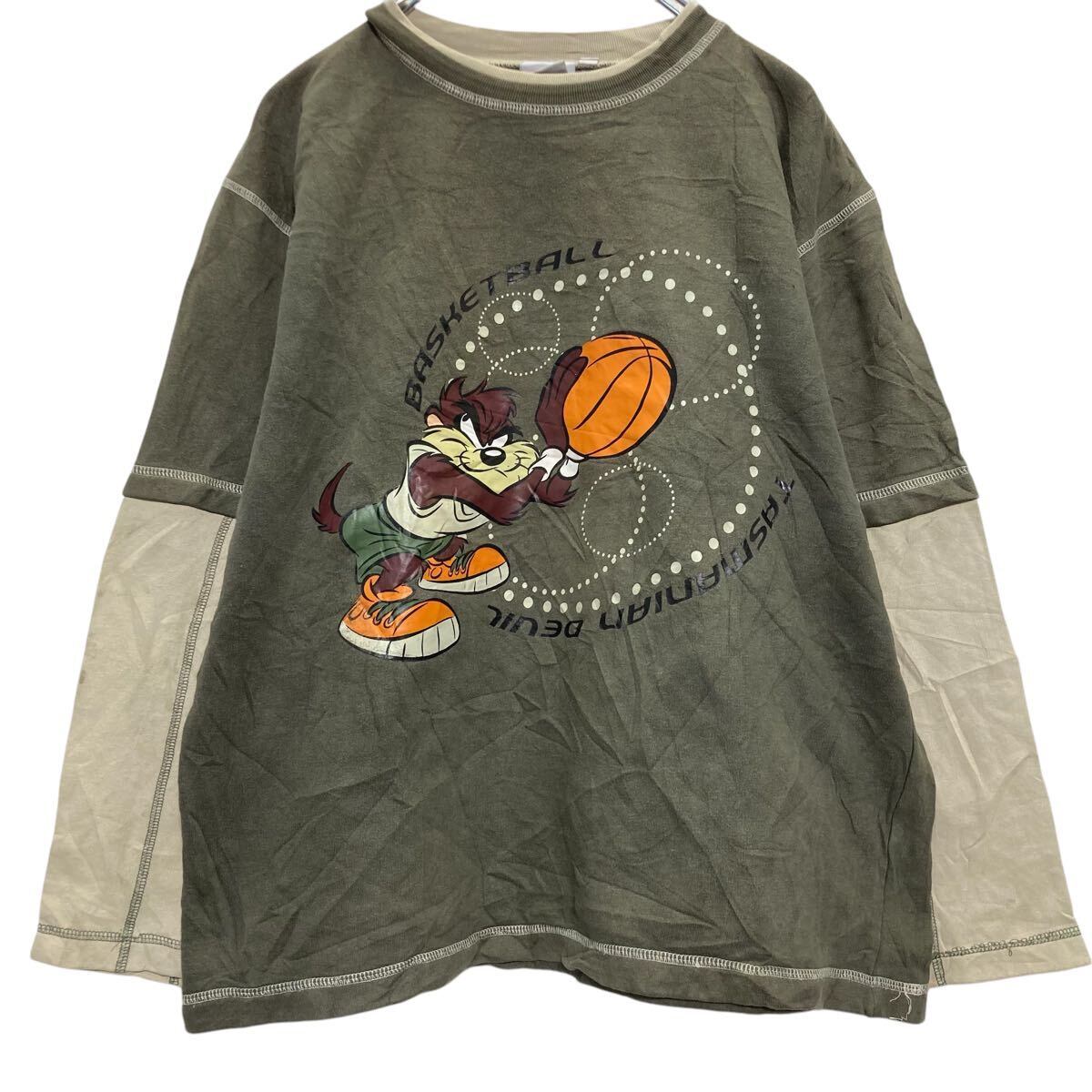 Looney Tunes キャラクタースウェット トレーナー S 程 カーキ ベージュ プルオーバー 古着卸 アメリカ仕入 a612-6808