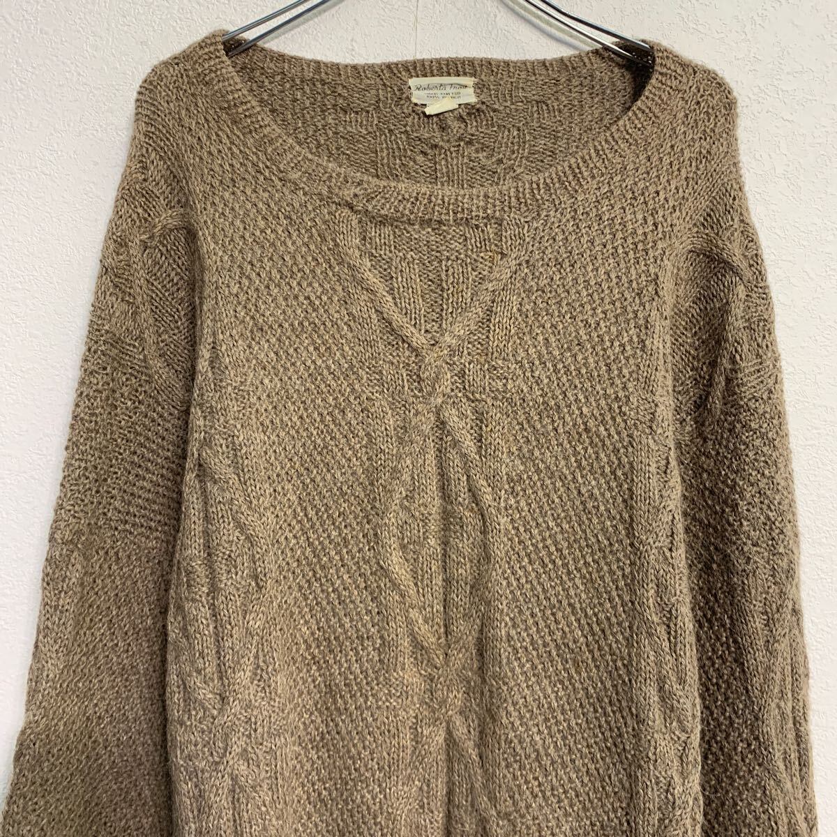 アルパカニット セーター S ブラウン プルオーバー ラグラン ケーブルニット シンプル 秋冬 古着卸 アメリカ仕入 a612-6897