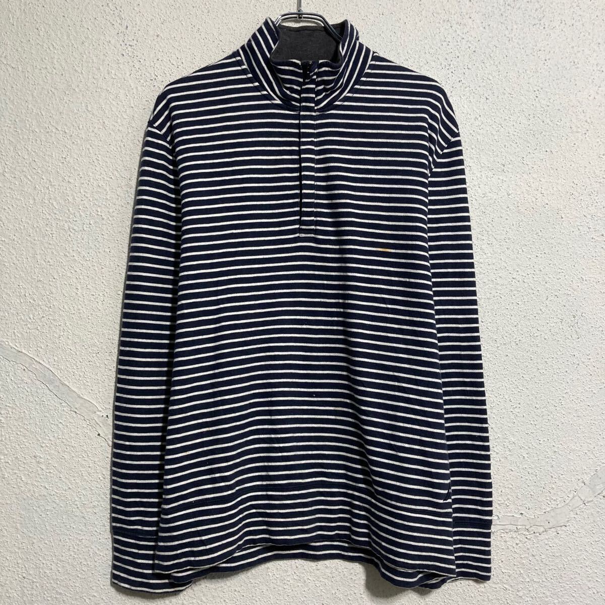 NAUTICA ボーダースウェット トレーナー ノーティカ M ブラック ホワイト ハーフジップ 古着卸 アメリカ仕入 a612-6978