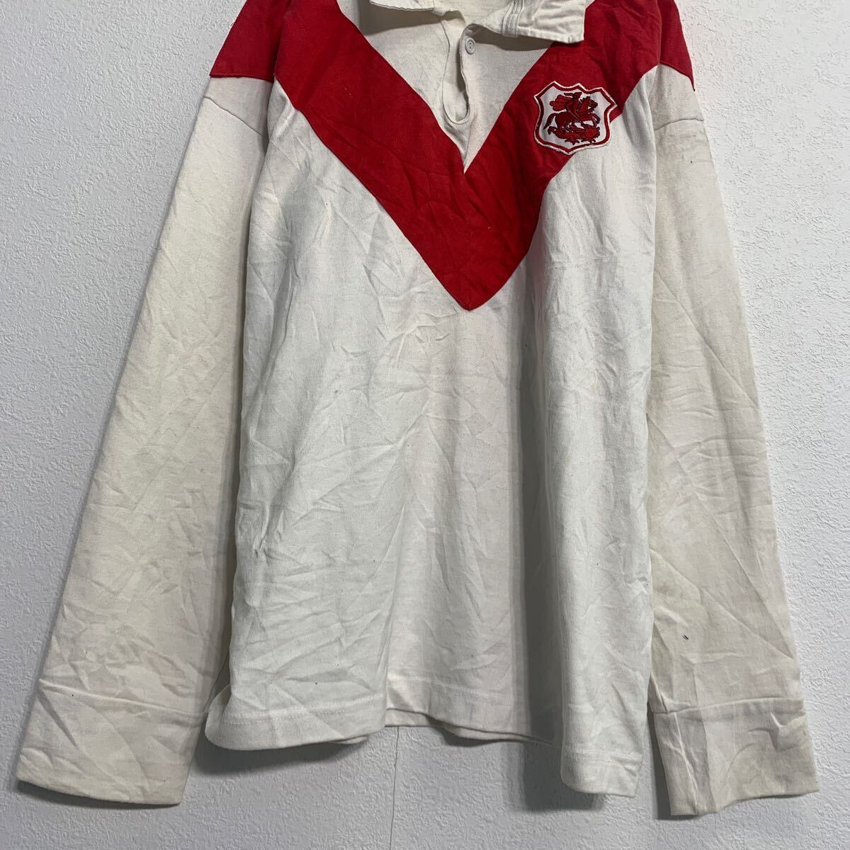 長袖 ポロシャツ XXL 程 ホワイト レッド ハーフボタン ビッグサイズ ラガーシャツ ワンポイント 刺繍 古着卸 アメリカ仕入 a612-6992