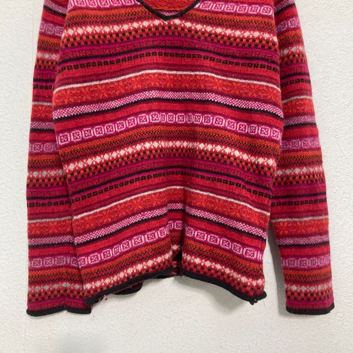 JNAJSKA ウール混紡 ニット セーター レディース XL レッド ピンク ボーダー Vネック 古着卸 アメリカ仕入 a612-7011