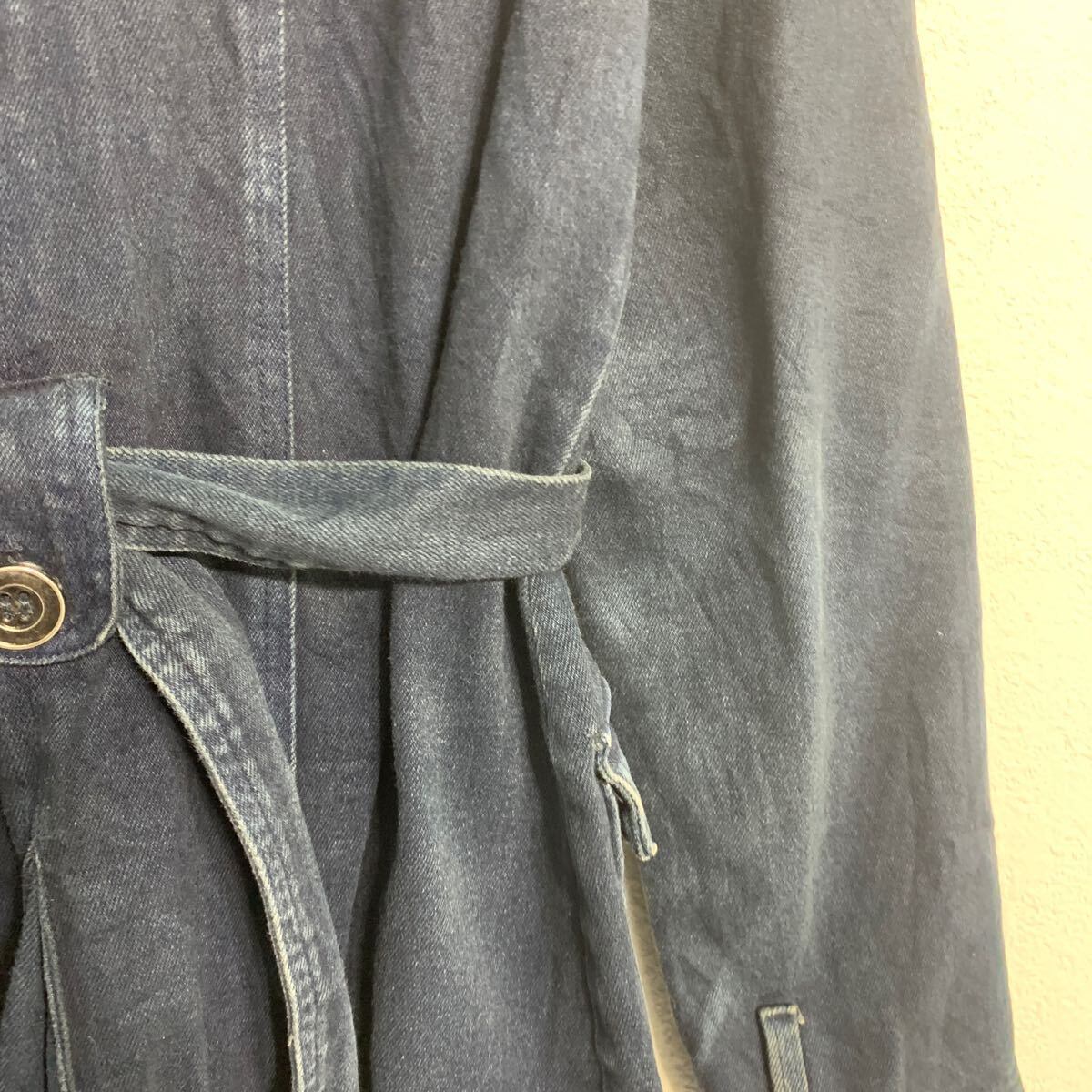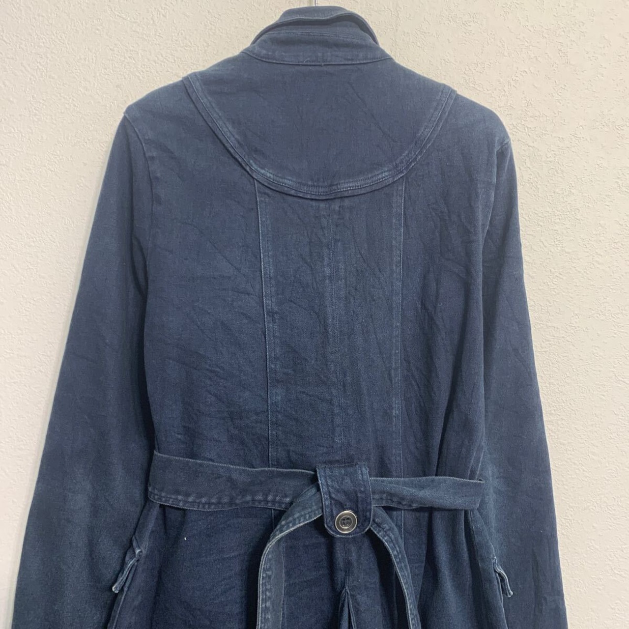 デニムジャケット M インディゴブルー ダブルボタン ベルト マルチポケット ロング丈 秋冬 古着卸 アメリカ仕入 a612-7024