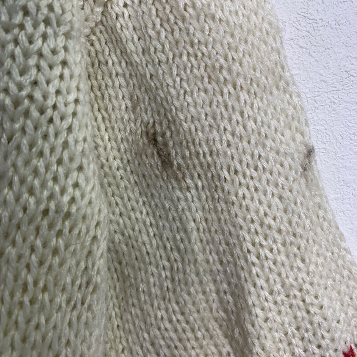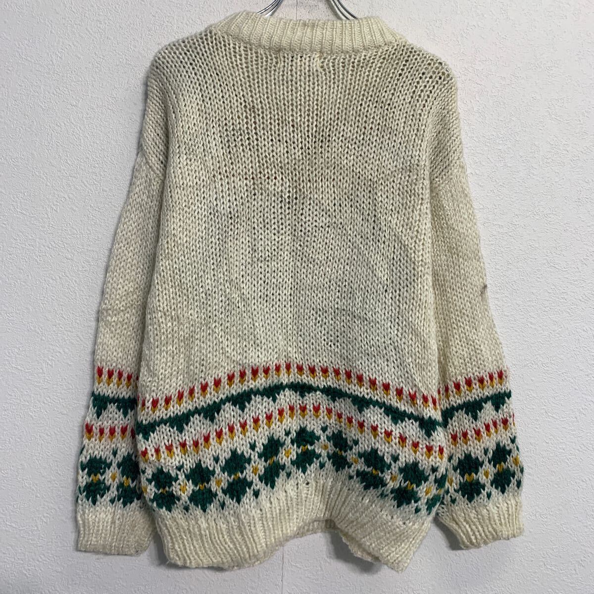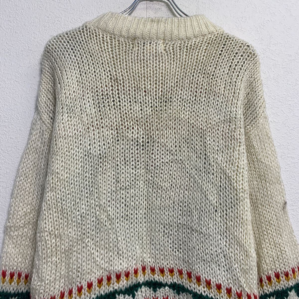 アクリルニット セーター M ホワイト レッド グリーン マルチカラー プルオーバー 花柄 刺繍 秋冬 古着卸 アメリカ仕入 a612-7037