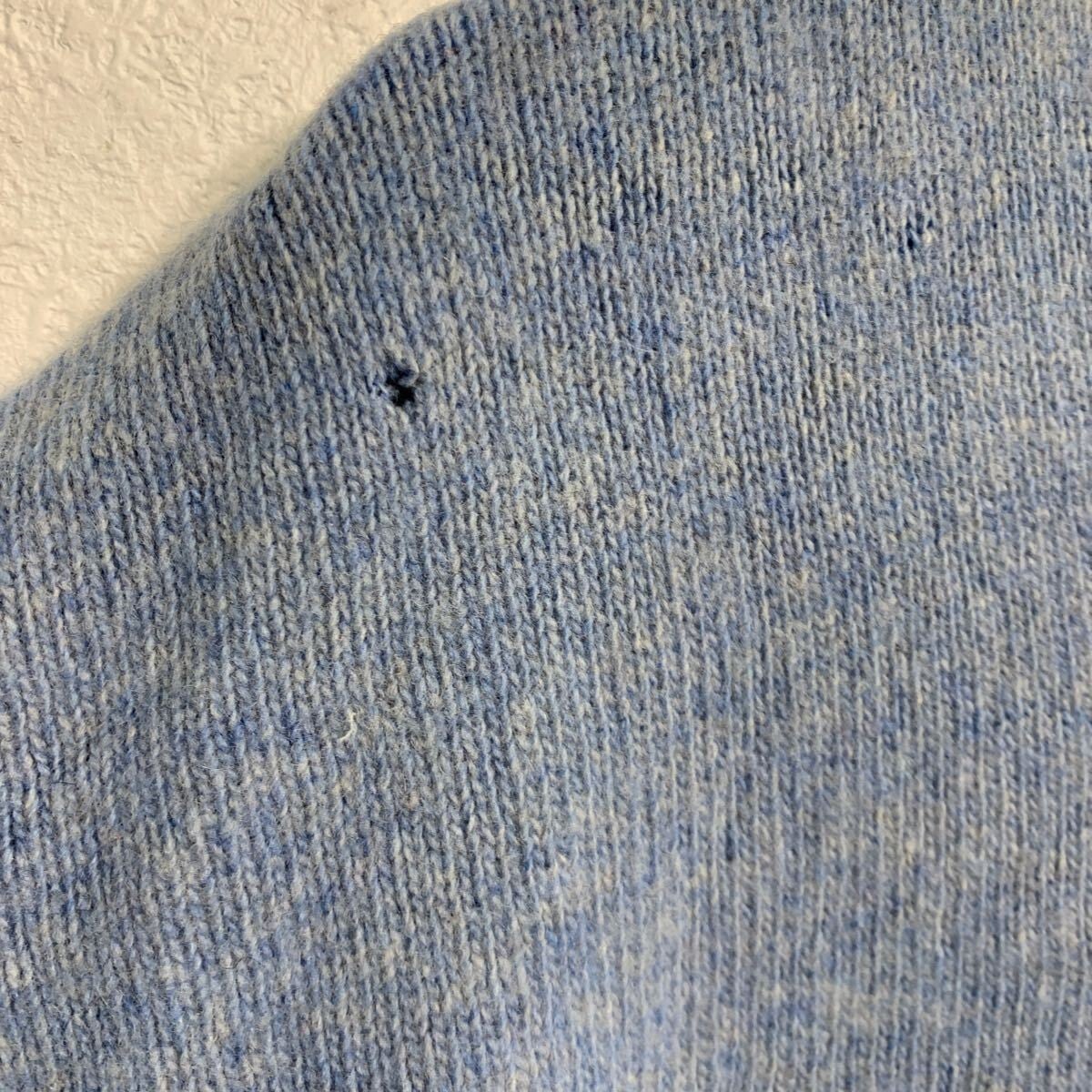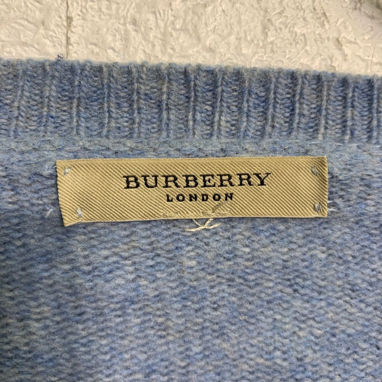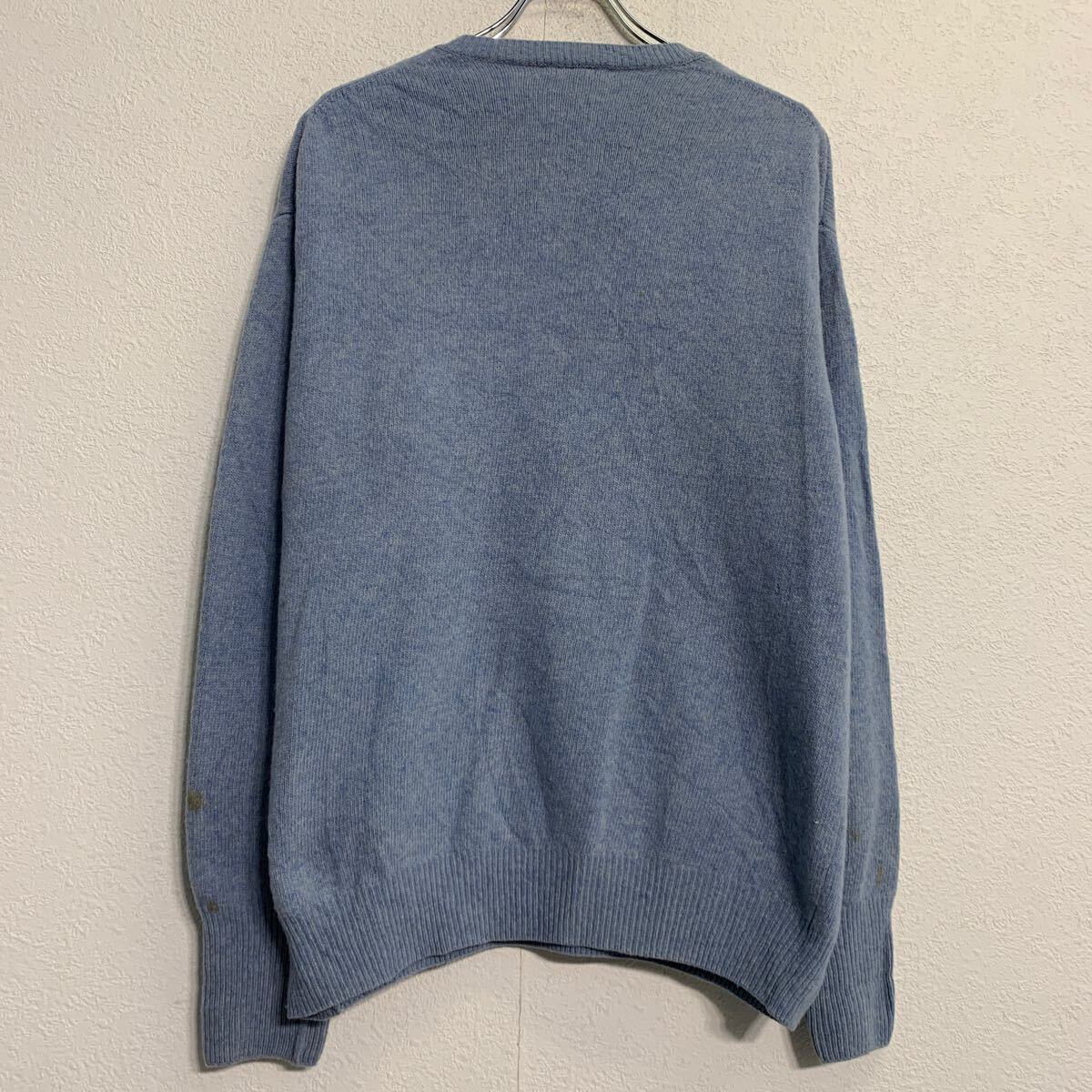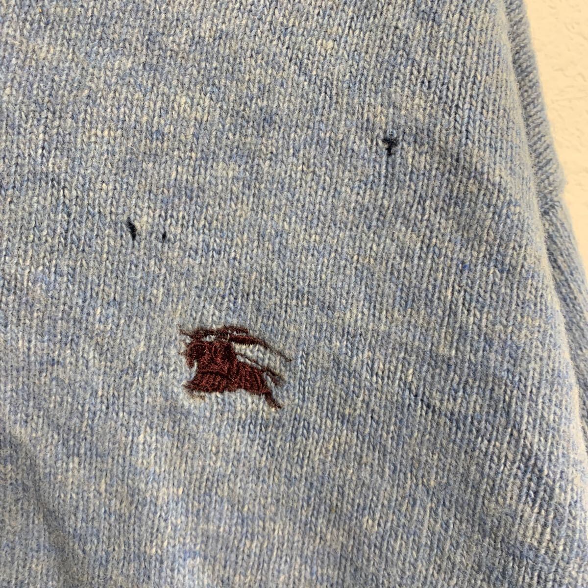 BURBERRY ウールニット セーター XL 程 ブルー バーバリー プルオーバー ビッグサイズ Vネック ロゴ 刺繍 古着卸 アメリカ仕入 a701-6603