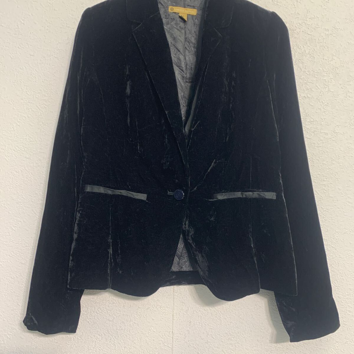 テーラードジャケット 6 レディース L 程 ブラック ボタン ブレザー ベロア 秋冬 アウター 古着卸 アメリカ仕入 a701-6743