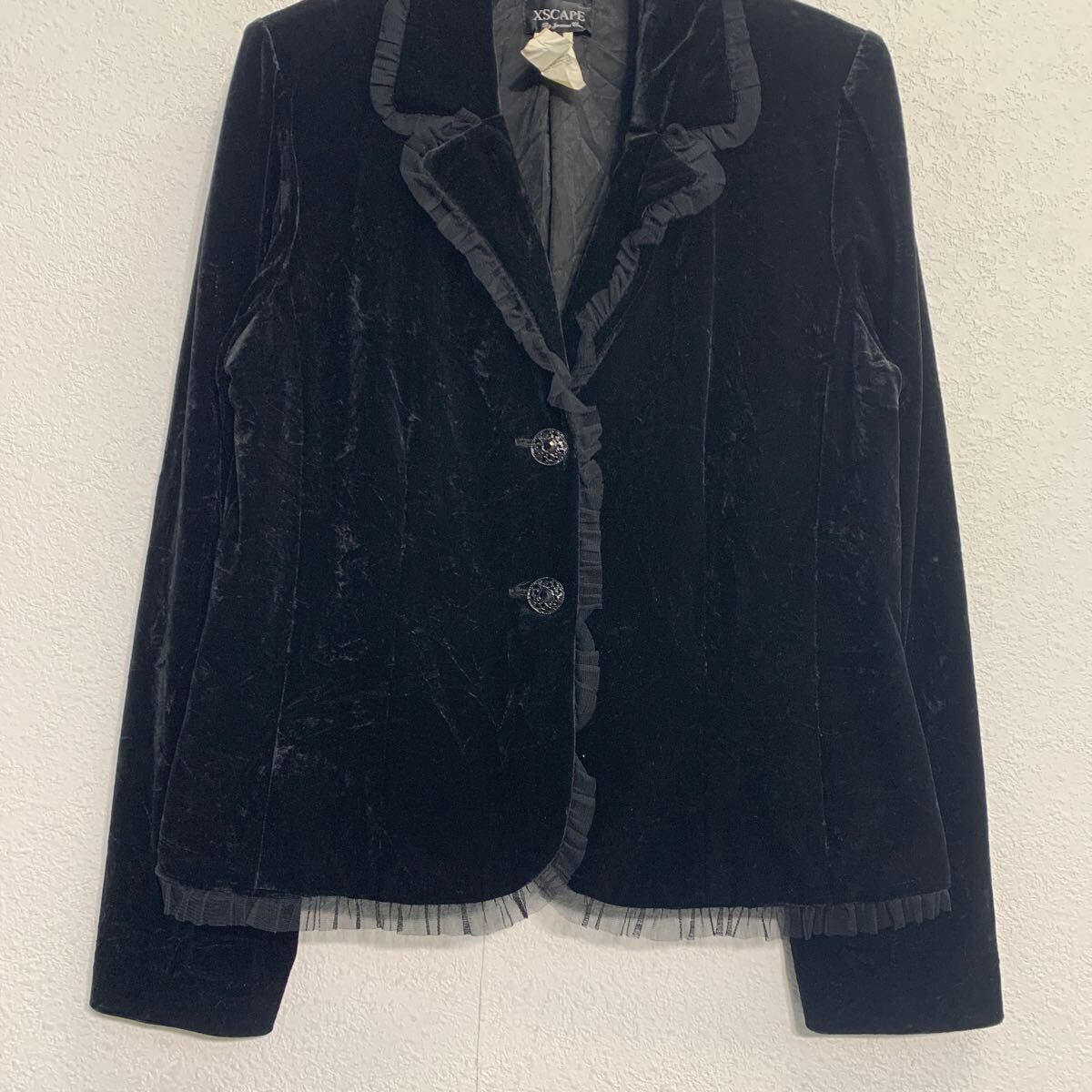 テーラードジャケット 12 レディース XL 程 ブラック ボタン ブレザー ベロア 秋冬 アウター 古着卸 アメリカ仕入 a701-6744