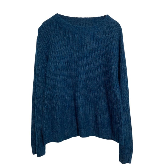 リブ編み ニット セーター M〜 ブルーグリーン ハンドメイド 古着卸 アメリカ仕入 a612-7165