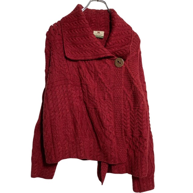 carrargdonn ウールニット セーター カーディガン レディース M レッド アイルランド製 柄編み 厚手 古着卸 アメリカ仕入 a612-7178